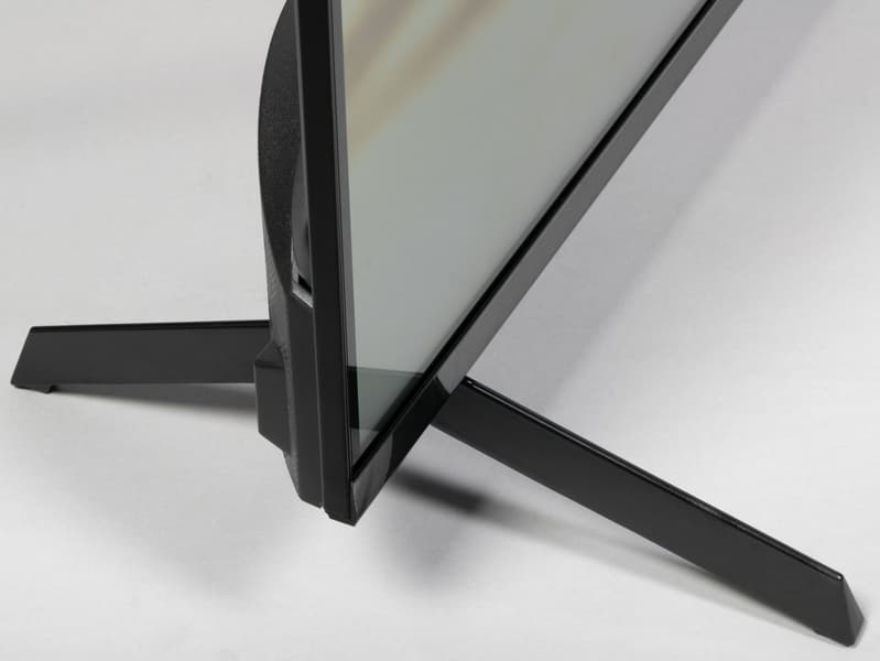 Дизайн строгий, декоративные элементы отсутствуют. Экран визуально безрамочный, он выглядит как монолитная поверхность, ограниченная снизу узкой планкой, а сверху и с боков — узкой окантовкой.