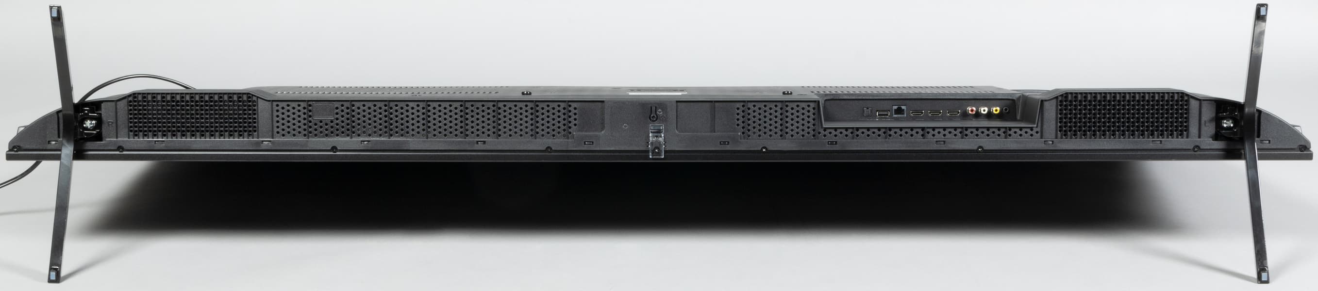 Задняя панель в верхней части изготовлена из тонкого листа стали и имеет стойкое черное матовое покрытие. Сверху и с боков панель заходит на торцы и образует окантовку экрана. Выступающий назад кожух в нижней части с заходом на нижний торец изготовлен из черного пластика с матовой поверхностью. Интерфейсные разъемы размещены в двух нишах. Разъемы, которые направлены вниз, находятся в незамкнутой нише, а которые вбок, — в замкнутой нише, что осложняет подключение к ним. В итоге ко всем разъемам подключать кабели очень неудобно.