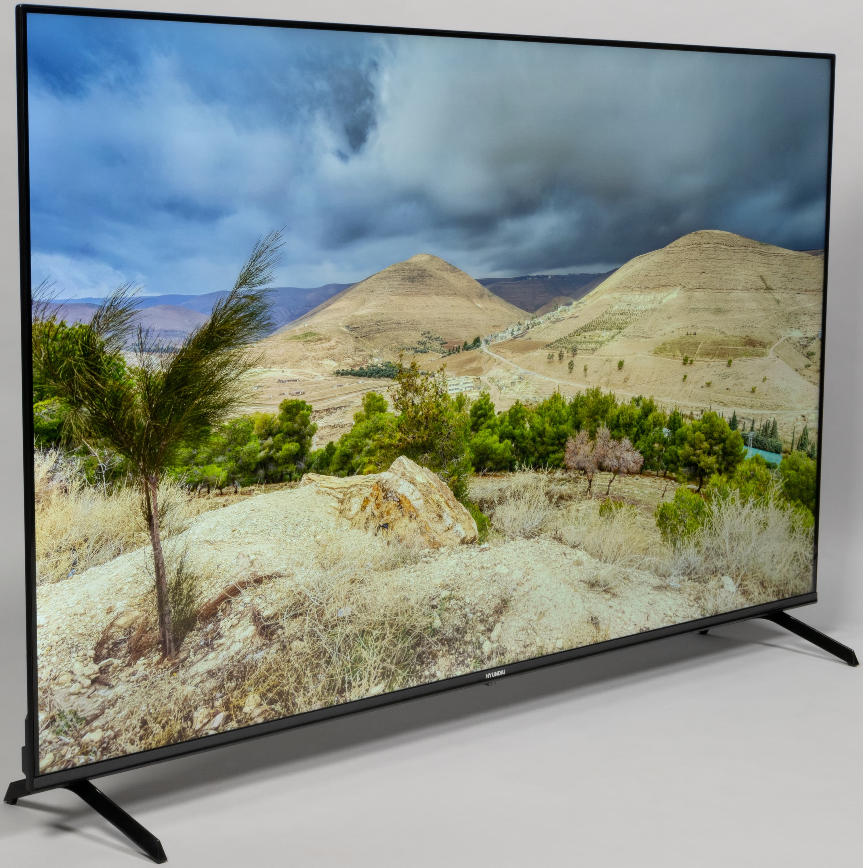 Телевизор Hyundai H-LED65BU7006 имеет строгий аккуратный дизайн с визуально безрамочным экраном, не отвлекающий зрителя от происходящего на экране. Работает ТВ под управлением системы Android TV, поэтому пользователь может установить практически любое стороннее ПО, в наибольшей степени отвечающее его потребностям и личным предпочтениям. Телевизор можно рекомендовать для просмотра телевизионных передач, кино и сериалов, а также для не очень динамичных игр. Отдельно отметим возможность использования этого ТВ в качестве огромного монитора при работе за ПК, так как снижения яркостной и цветовой четкости, а также видимого мерцания нет, но нужно учитывать довольно высокую минимальную яркость.