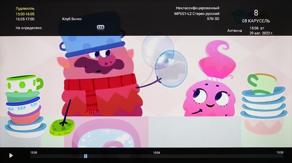 Присутствуют четыре списка избранных программ. Есть хорошая поддержка электронной программы передач — можно посмотреть, что именно идет или будет идти на текущем и других каналах, запрограммировать просмотр или запись программы или сериала и т. д.