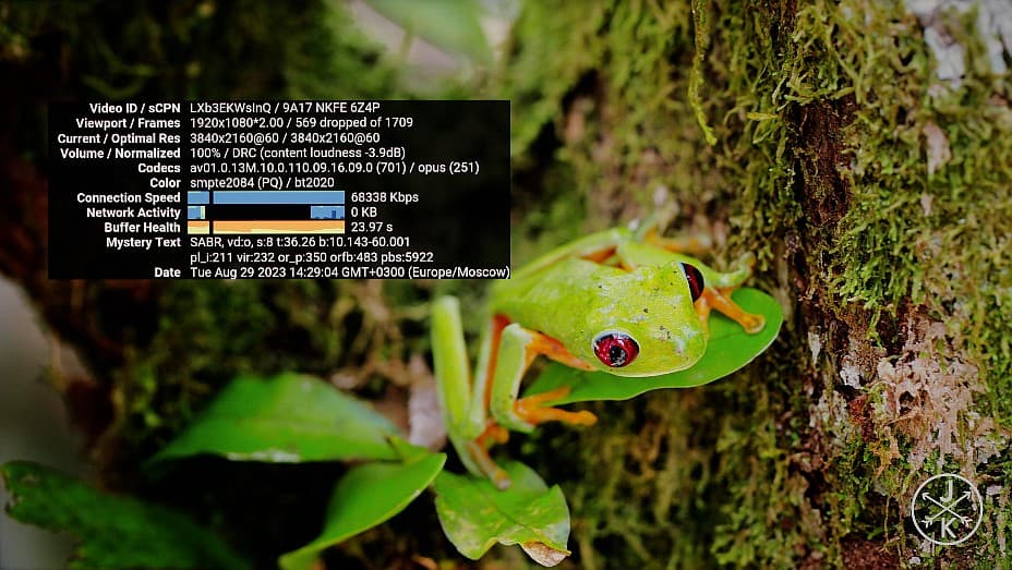 Впрочем, в данном случае — 3840×2160, 60 кадр/с и HDR — телевизор уже с трудом справляется с выводом видео без пропусков кадров.