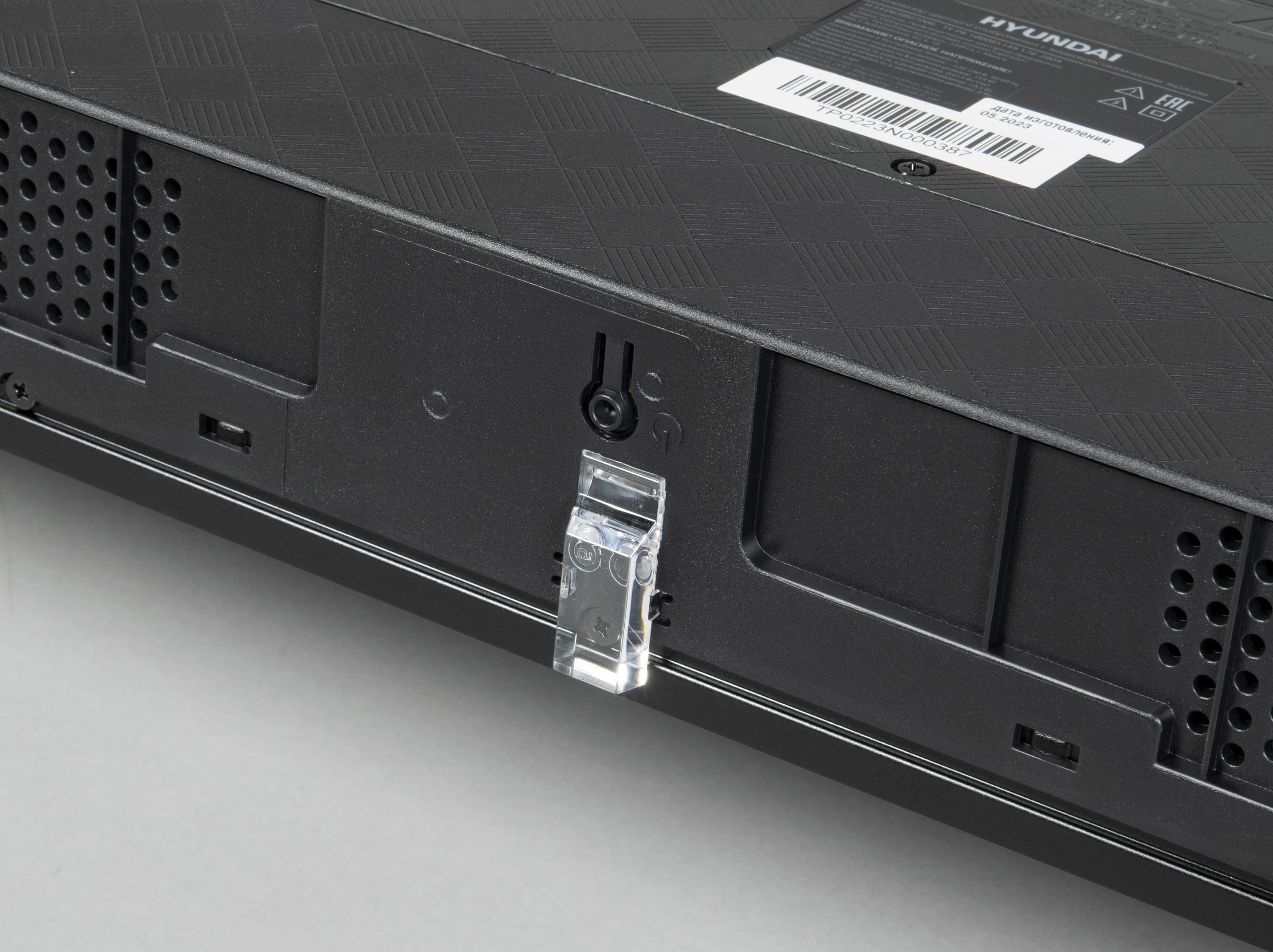 На нижнем торце по центру есть накладка-световод из прозрачного пластика, прикрывающая ИК-приемник пульта ДУ и индикатор состояния.
