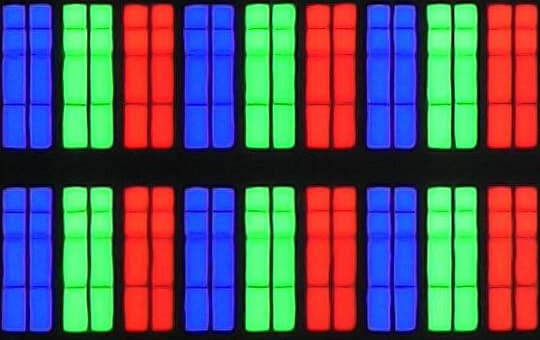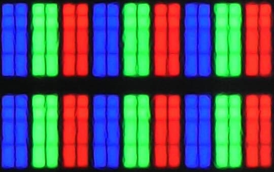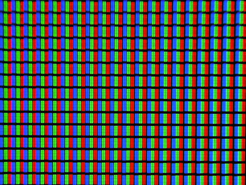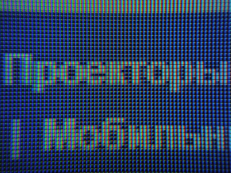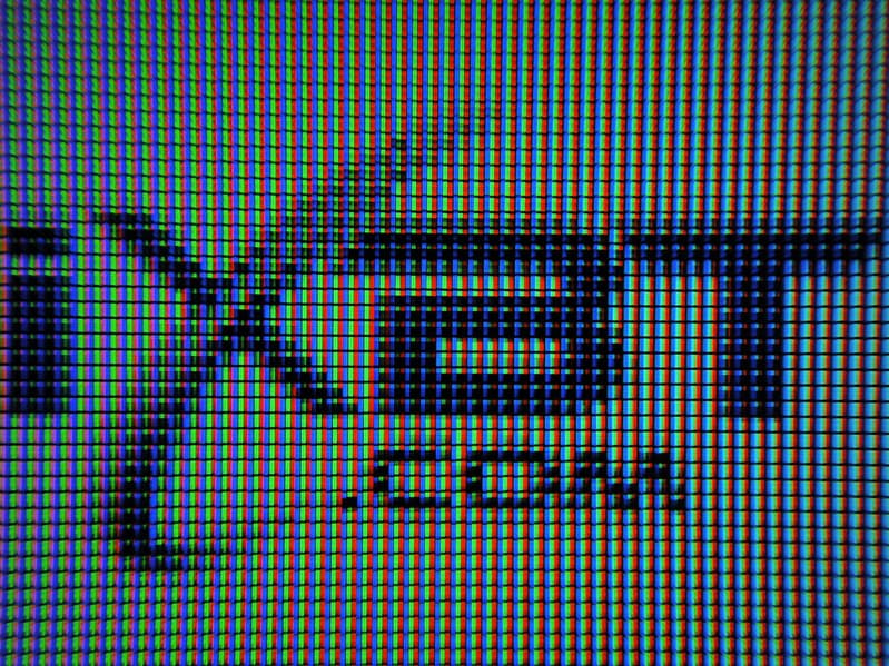 По микрофотографиям матрицы видна характерная для некоторых подтипов VA-матрицы структура субпикселей.