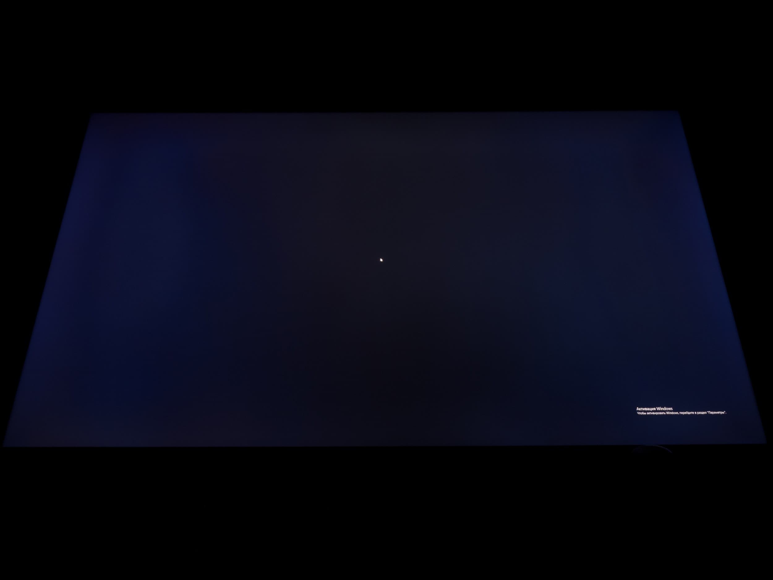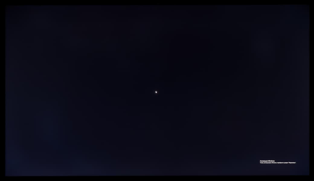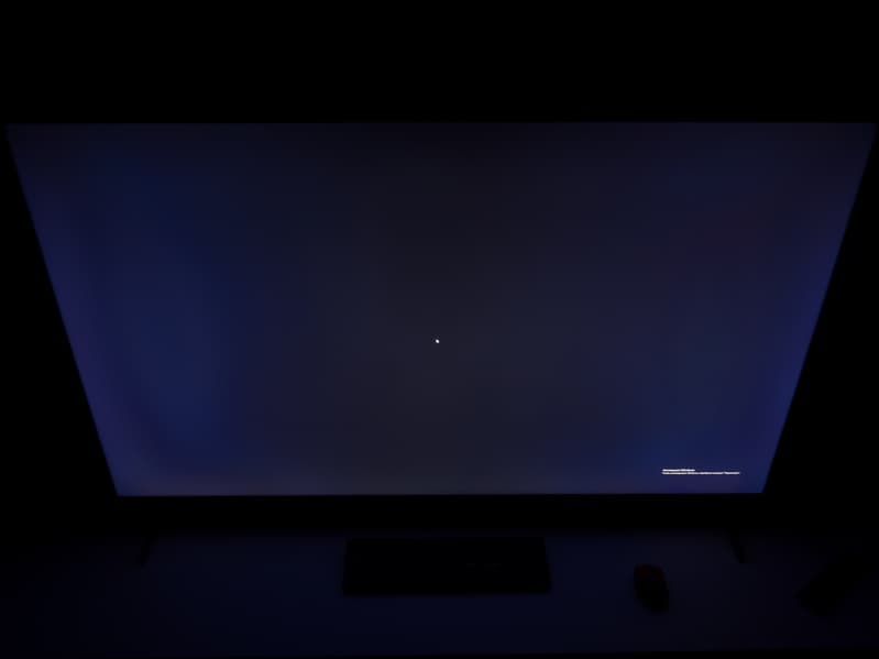При выводе черного поля равномерность подсветки оказалась очень хорошей, без визуально выраженных дефектов однородности по полю матрицы, что подтверждает вторая фотография, сделанная с расстояния до экрана в 3 метра. При этом классический Glow-эффект, свойственный IPS-моделям, у телевизора Hyundai на *VA-матрицы выражен исключительно при близком расположении пользователя к экрану и проявляются визуальным снижением глубины черного по краям панели, без появления дополнительных паразитных оттенков. Явление вполне обычное и, в некоторой степени, относится к более низкой стабильности картинки, чем у IPS-аналогов.