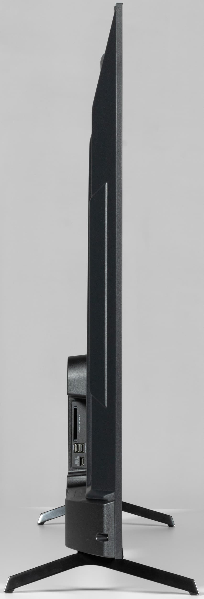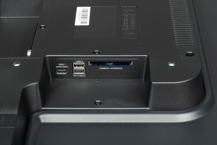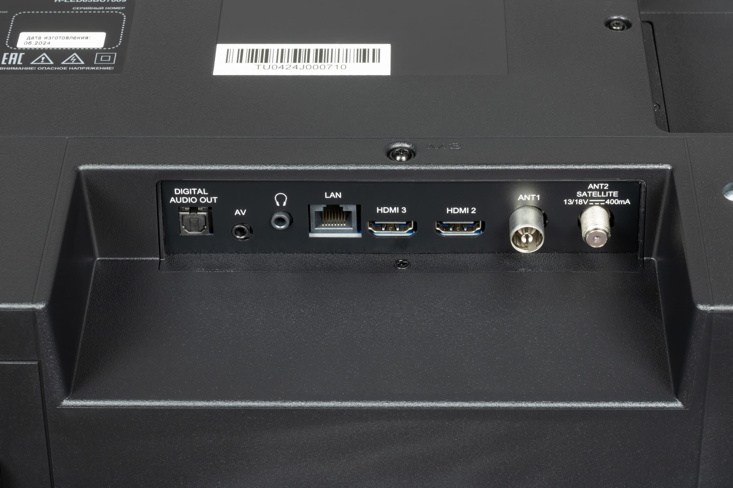 В плюсы телевизора стоит записать три входа HDMI (по заявлению производителя, все три — версии 2.1, что позволяет раскрыть весь потенциал модели, а HDMI1 — еще и с поддержкой eARC/ARC) и два USB 2.0 с максимальным током до 0,5 А, что обеспечивает беспроблемность работы большинства не слишком требовательных к питанию флэш-накопителей и твердотельных дисков (SSD). Также оба порта можно использовать для подключения слаботочной периферии (клавиатуры, мышки, USB-ресиверы) с соответствующим требованием по питанию.