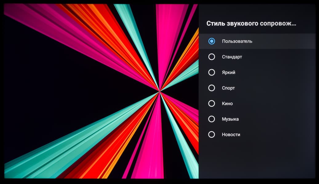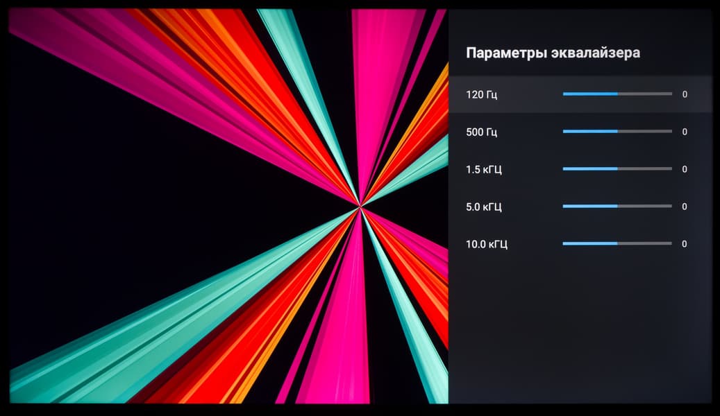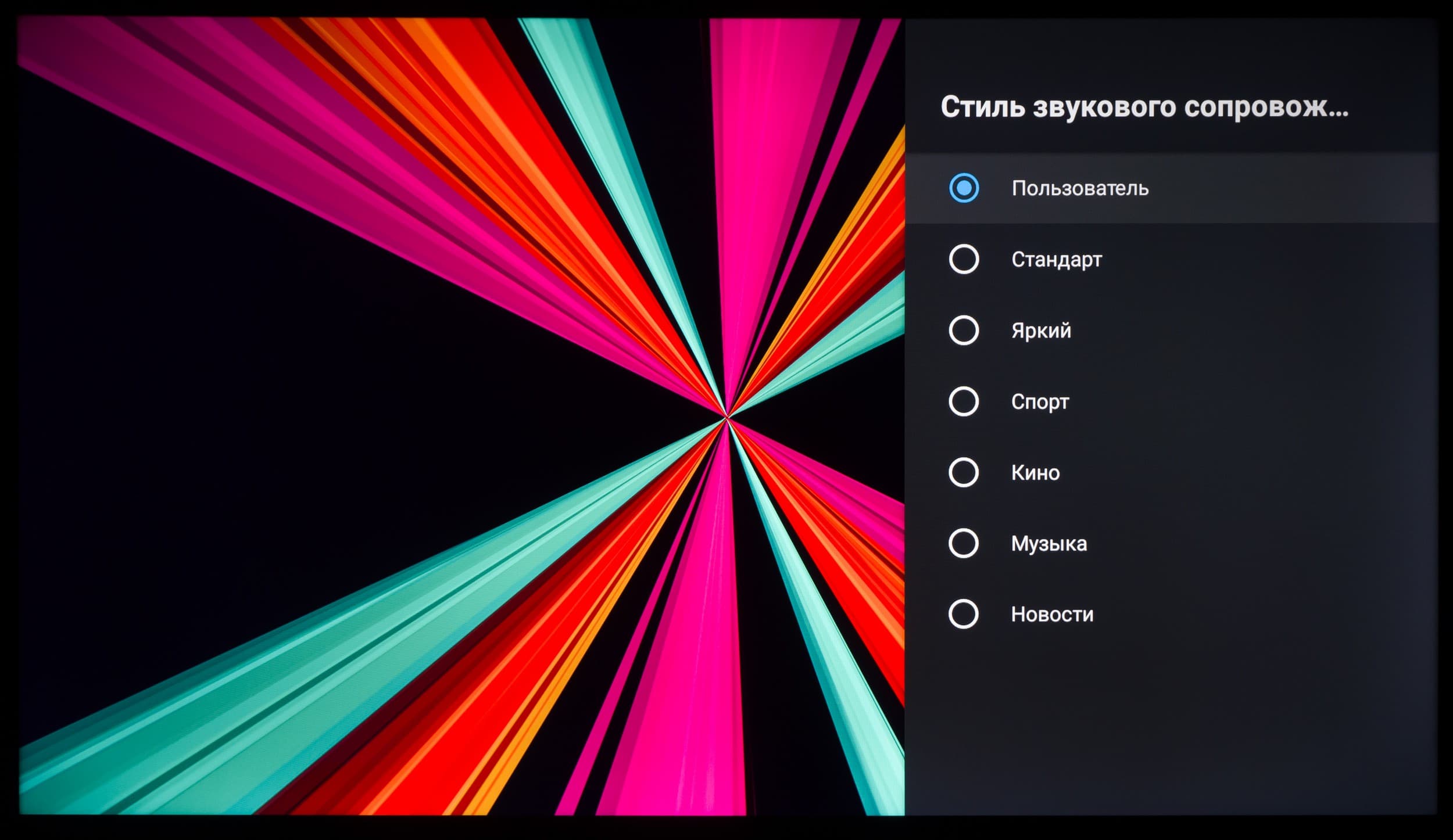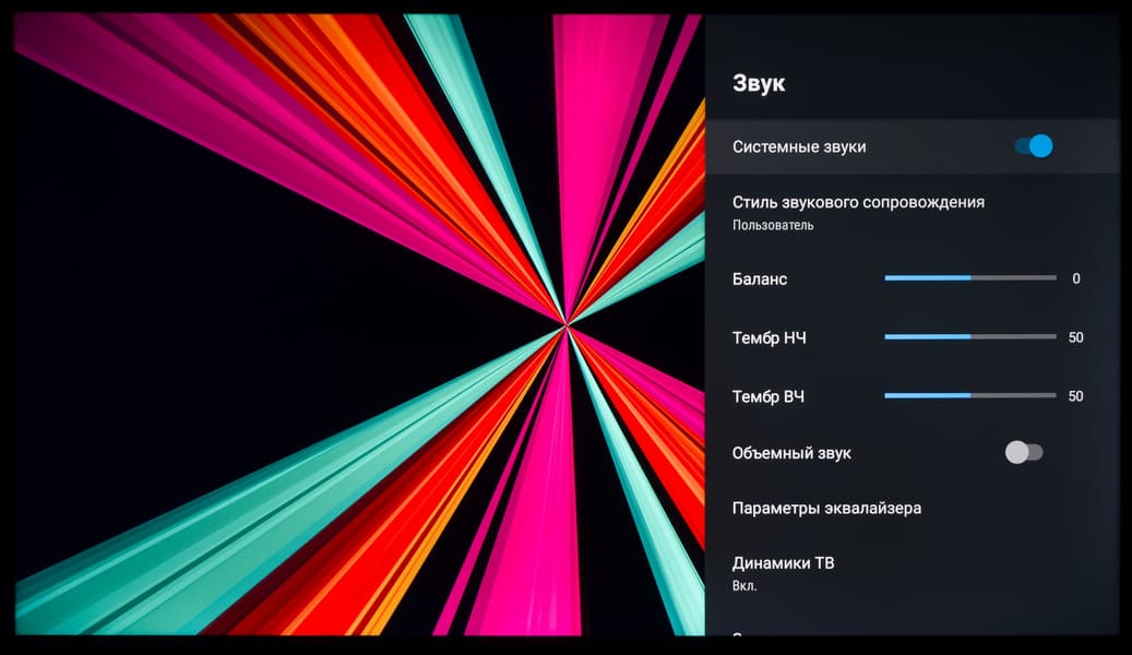 В разделе «Звук» ОС есть предустановленные режимы эквалайзера, а также доступна ручная регулировка баланса, корректировка низких и высоких частот, активация функций «Объемный звук» (есть положительные изменения) и автоматического управления громкостью (актуально для источников с сильно отличающимся уровнем аудиосигнала), выбор цифрового выхода, включение обработки Dolby Audio со своими дополнительными параметрами.