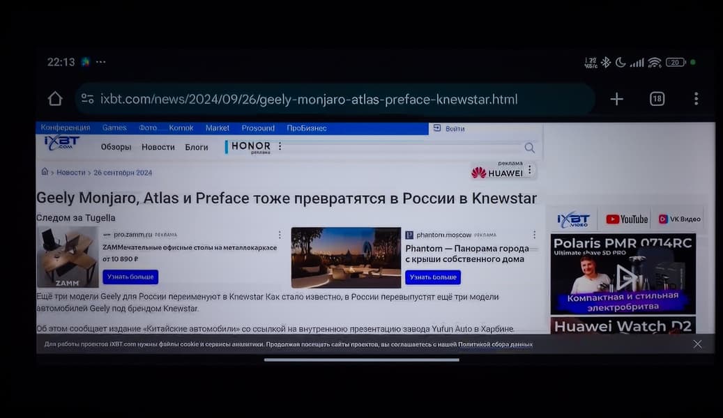 В режиме Miracast на телевизор по Wi-Fi можно передавать копию экрана мобильного устройства и звук. В принципе, в случае достаточно производительного устройства (в нашем случае это был Poco F5) можно получить удовлетворительный по качеству вывод видео (зависит от выводимого приложения), но с уровнем fps не выше 30 и ощутимой задержкой вывода, иногда достигающей несколько секунд.