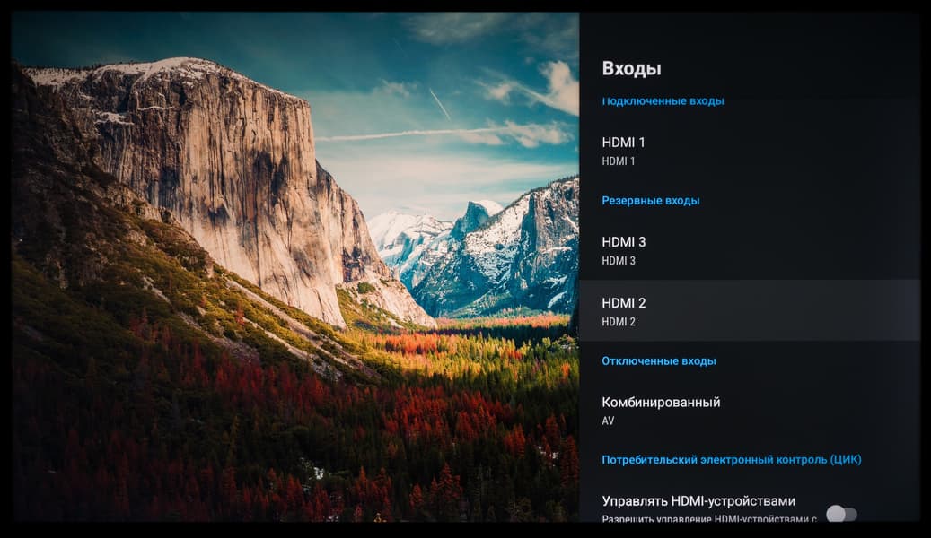 У телевизора есть поддержка управления по HDMI — функция HDMI CEC. В нашем случае она прекрасно работала с ТВ-приставкой Xiaomi Mi Box S и ее стандартным пультом ДУ. Можно сделать и обратное действие, когда пультом самого ТВ параллельно активируется, управляется и выключается сама приставка.