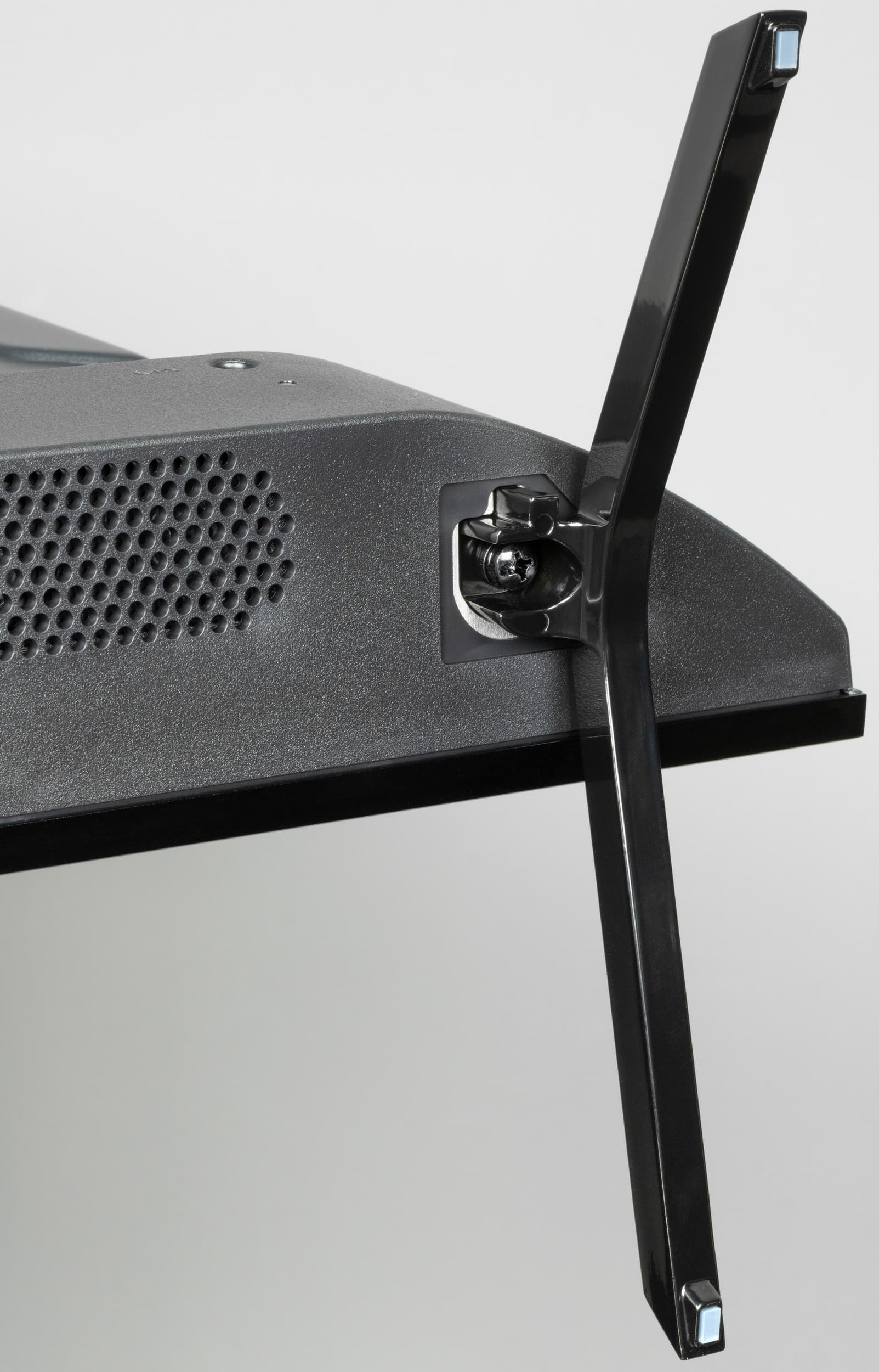 Несмотря на свою относительную легкость (две ножки прибавляют телевизору всего порядка 500 г) они надежно удерживают крупный корпус ТВ с еле заметным наклоном назад (порядка одного градуса), без лишних содроганий. Другими словами, жесткость собранной конструкции более чем достаточная. Следует отметить и тот факт, что в сравнении с предшественником телевизор стал почти на 3 кг легче.