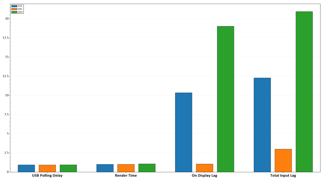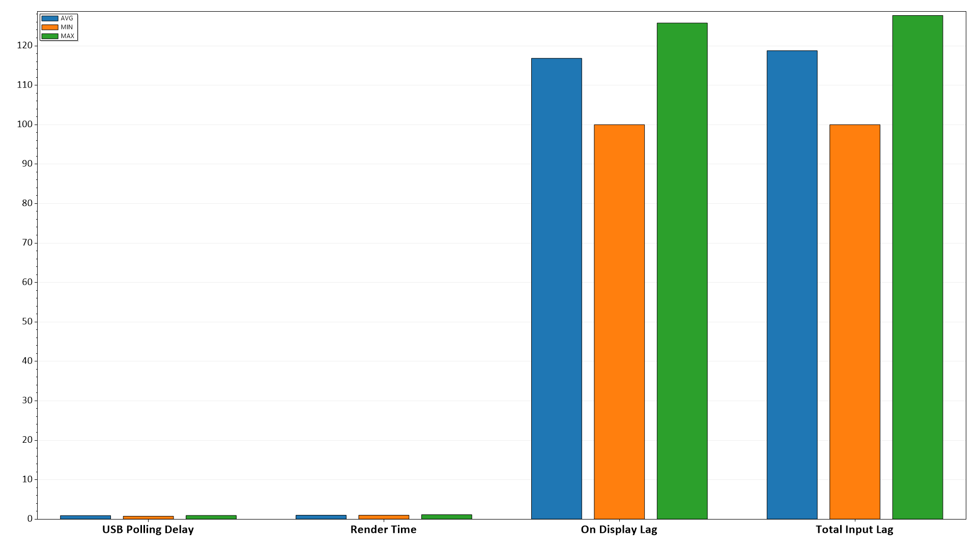 Также мы определяли полную задержку вывода от переключения страниц видеобуфера до начала вывода изображения на экран. В итоге при подключении по HDMI задержка вывода изображения в случае сигнала 3840×2160 и 60 Гц составила порядка 10,5 мс при активированном «игровом режиме». Его отключение привело к увеличению средней задержки аж до 118 мс, а поэтому можно смело сделать вывод, что игровой режим прекрасно справляется со своей задачей и строго рекомендуется к использованию.
