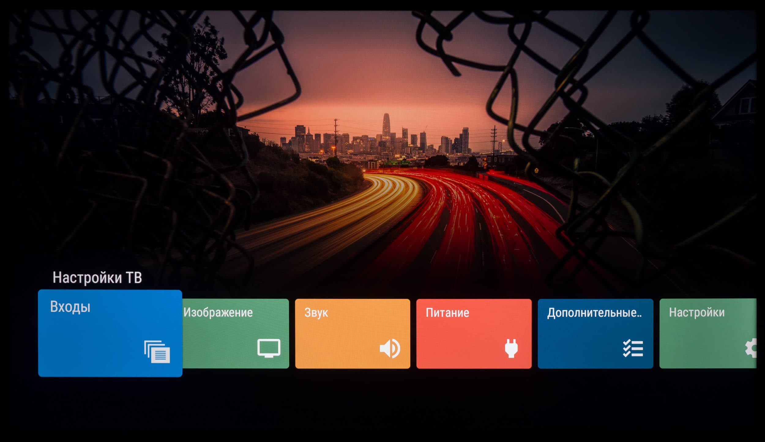 Основной блок настроек системы представлен в хорошо знакомом виде — как и у всех ТВ-устройств с Android на борту. Настроек и в частности настроек изображения много. Они доступны, например, из меню настроек, вызываемого с домашней страницы либо из контекстного меню с цветными плитками, которые можно вывести на экран при просмотре ТВ-каналов или внешних источников видеосигнала (ПК в их числе).