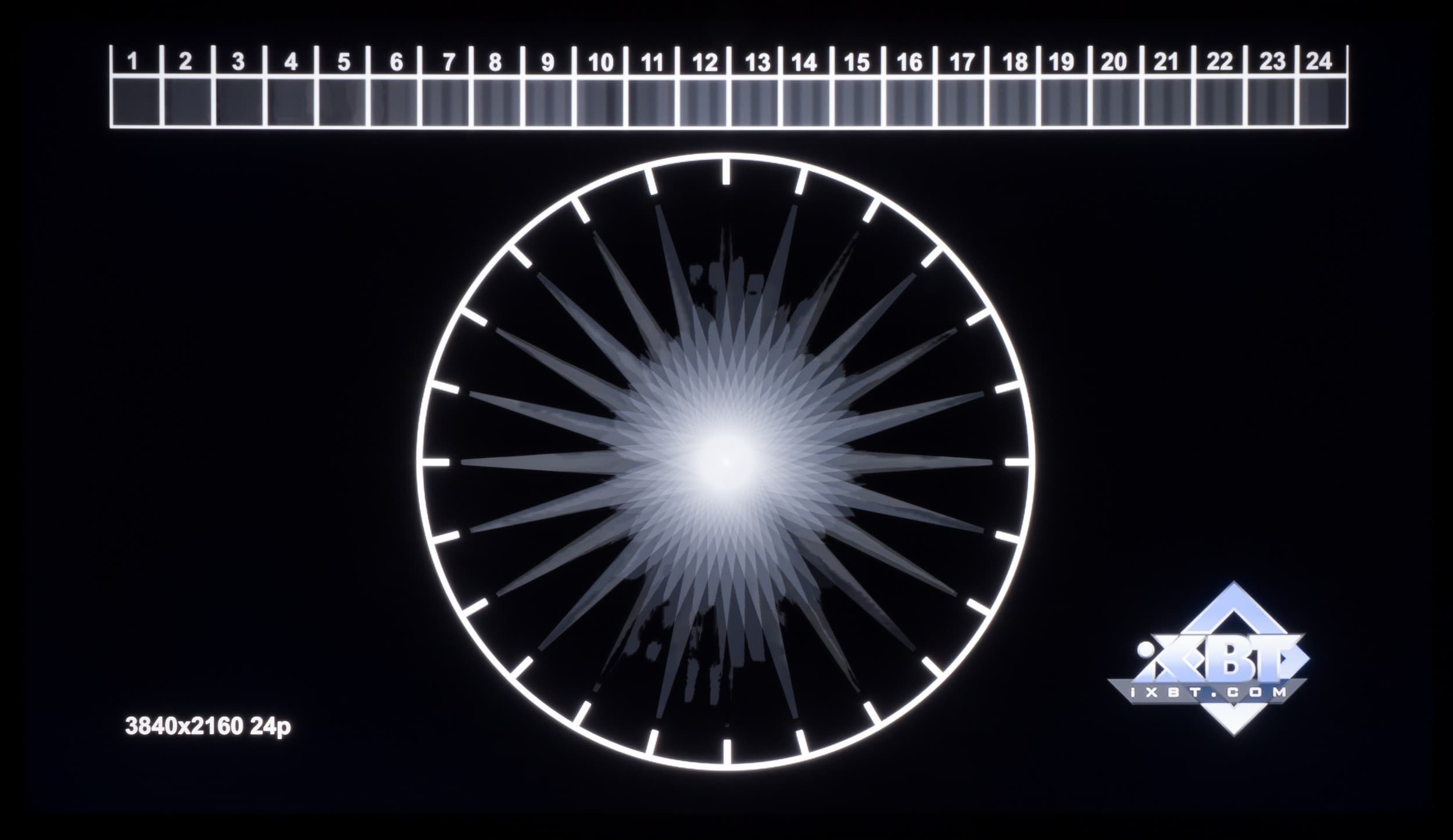Если посмотреть на неравномерность при переходе к более темным серым оттенкам с их выводом на всю площадь экрана ТВ, то вдобавок можно заметить выраженные вертикальные полосы (с легким паразитным оттенком), свидетельствующие о расположении лент светодиодной подсветки, ведь у героя обзора она — прямая (Direct-LED), а поэтому подобная особенность — в порядке нормы.