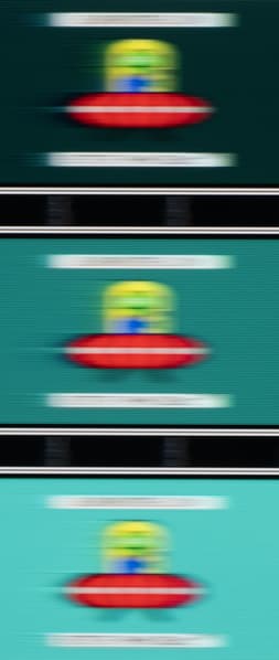 Для наглядного представления о том, что на практике означает такая скорость матрицы приведен снимок выше, полученный с помощью движущейся камеры. Подобные снимки показывают, что видит человек, если он следит глазами за двигающимся на экране объектом.