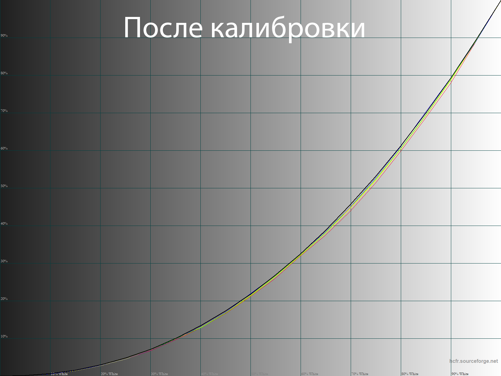 После такой настройки мы получили правильный баланс RGB, более высокое соответствие гаммы необходимому референсу, различимость в светах и тенях (без излишеств) и адекватную насыщенность во всем диапазоне. Все остальные коррекции были выполнены с помощью соответствующих правок сигнала видеокарты через ее собственный LUT.