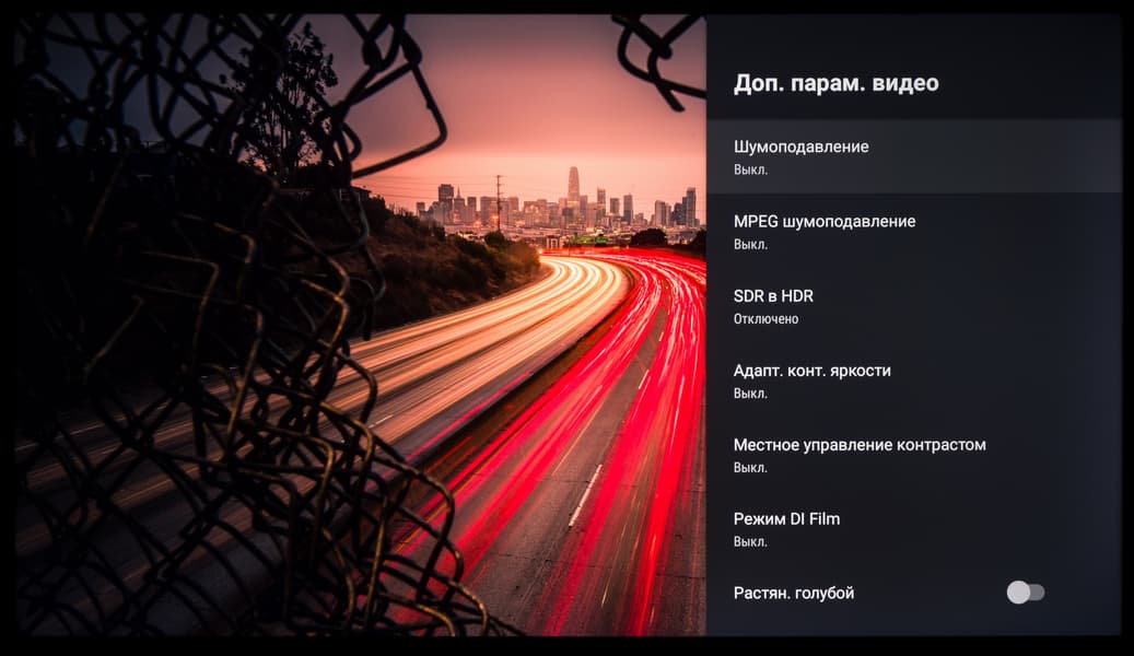 Наполнение контекстного меню может отличается в зависимости от источника изображения, воспроизводимого контента, его формата и доступных HDR-метаданных. В некоторых случаях часть настроек, ответственных за цветопередачу и качество изображения, может быть недоступна для пользователя. Также включение некоторых функций приводит к ограничению работы других — они становятся недоступны (заблокированы). Впрочем, в случае с Android TV таких ограничений всё же меньше, чем на других платформах — это факт.