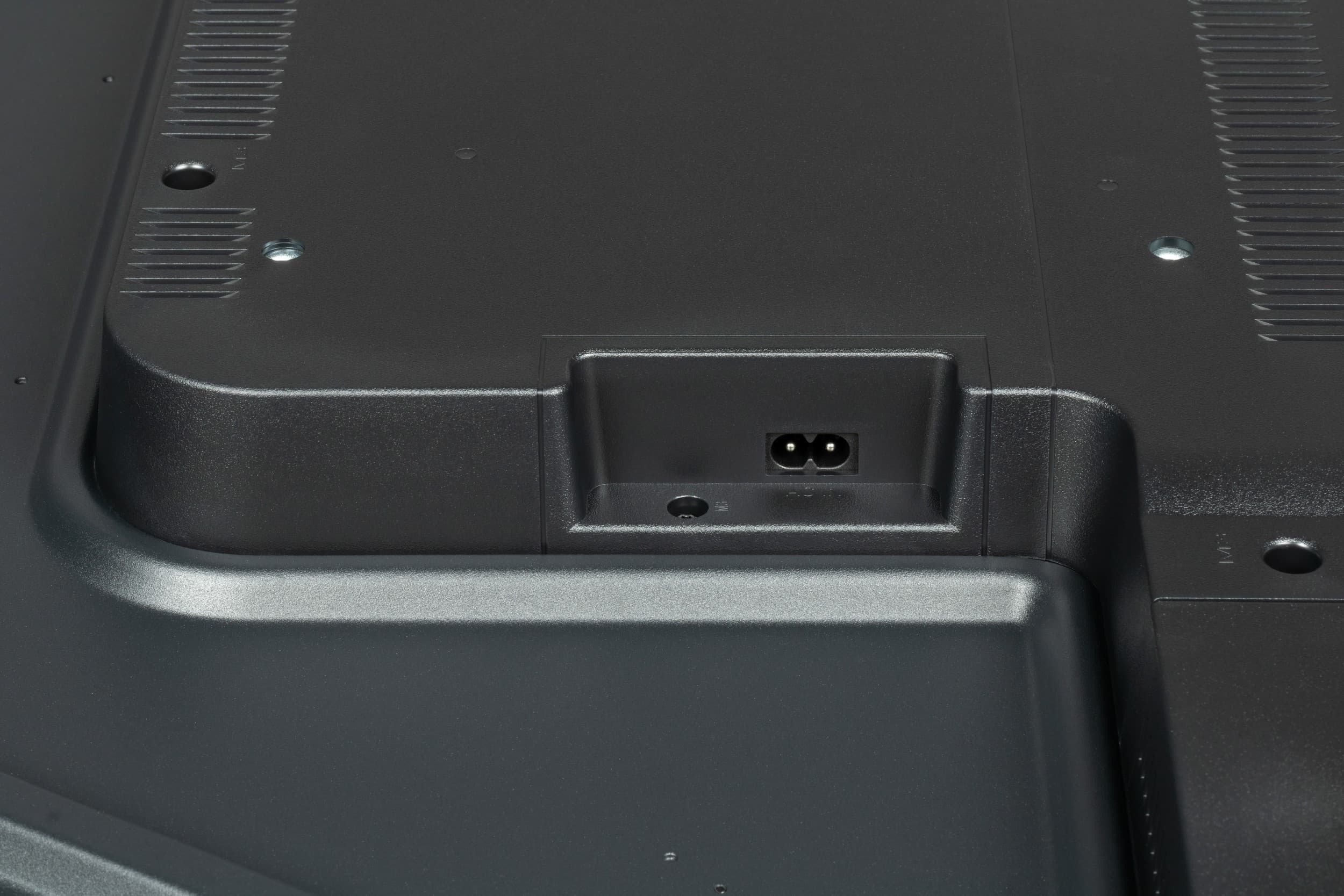 Сзади телевизор выглядит аккуратно. Большая часть поверхности задней панели изготовлена из тонкого листа стали и имеет стойкое черное матовое покрытие. Сама выштамповка отличается по рисунку от предшественника. Сверху и с боков панель заходит на торцы и образует окантовку экрана. Выступающий назад кожух в нижней части с заходом на нижний торец изготовлен из черного пластика с матовой, слегка шершавой поверхностью. Основные интерфейсные разъемы размещены в двух разнонаправленных нишах.