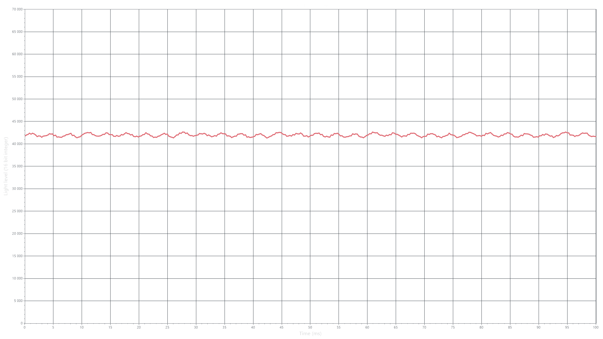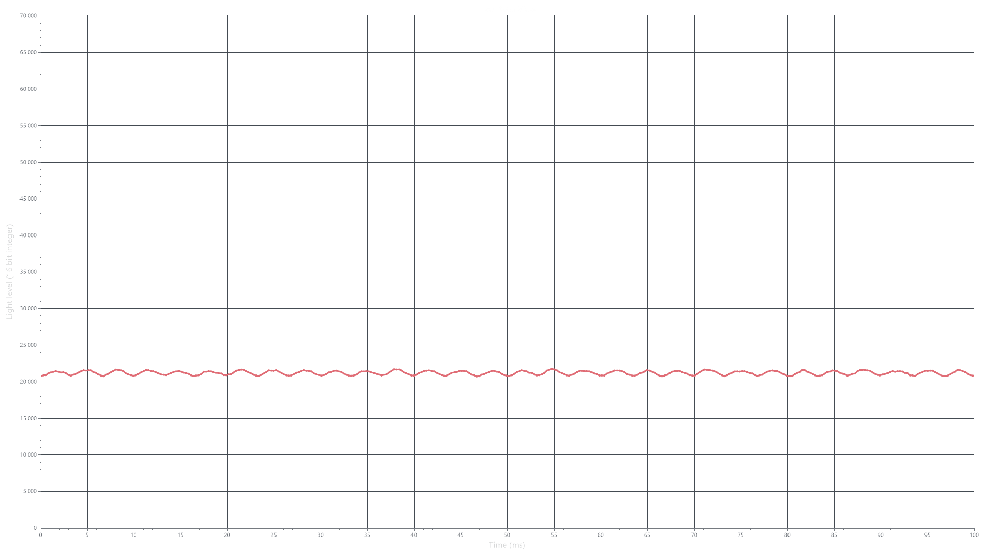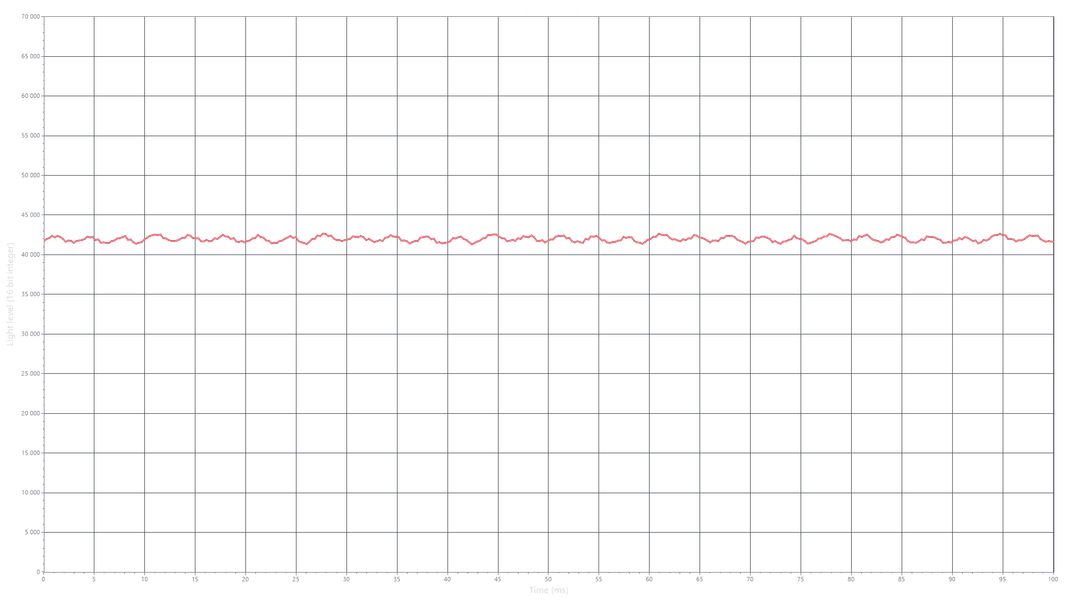 На любом уровне яркости значимая модуляция подсветки отсутствует, поэтому нет и никакого видимого мерцания экрана (ШИМ-модуляции в привычном понимании большинства потребителей). По данным же прибора Radex Lupin пульсации не превышают 0,8%-2,1% в зависимости от уровня выставленной яркости подсветки телевизора — это отличный результат для устройства из рассматриваемого ценового сегмента и современных моделей жидкокристаллических ТВ в целом.