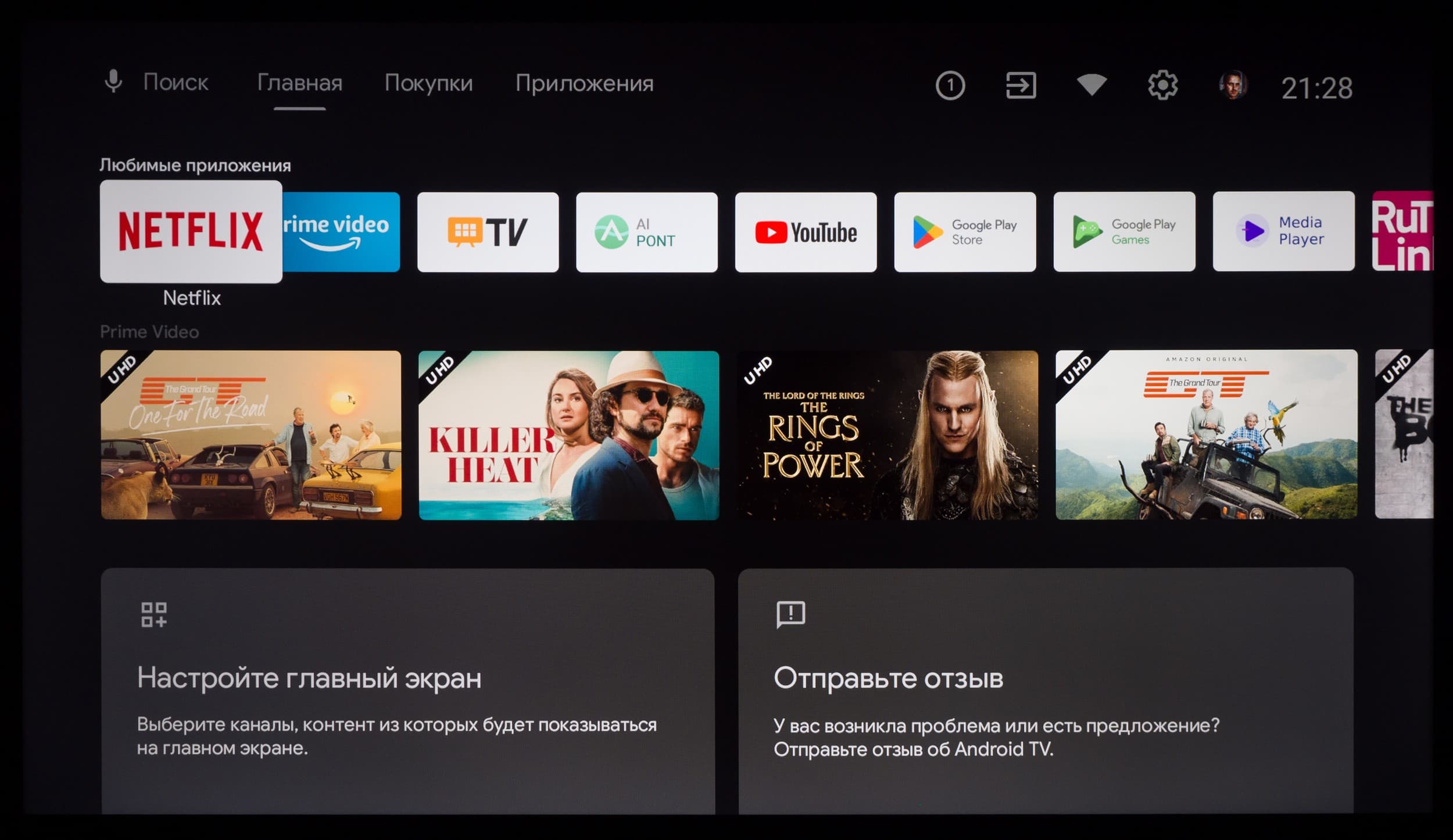 Навигация по оболочке комфортная, с приятной анимацией. После полноценной загрузки всех рабочих элементов система работает достаточно быстро и плавно, но исключительно в том случае, если не мучить ее повторяющимися запросами к тем или иным функциям с пульта ДУ и не пытаться проводить много действий за короткий промежуток времени. Особенно этот совет поможет при просмотре тяжелых роликов в 4K (и 4K HDR в частности), когда система и без дополнительных запросов со стороны пользователя сильно загружена.