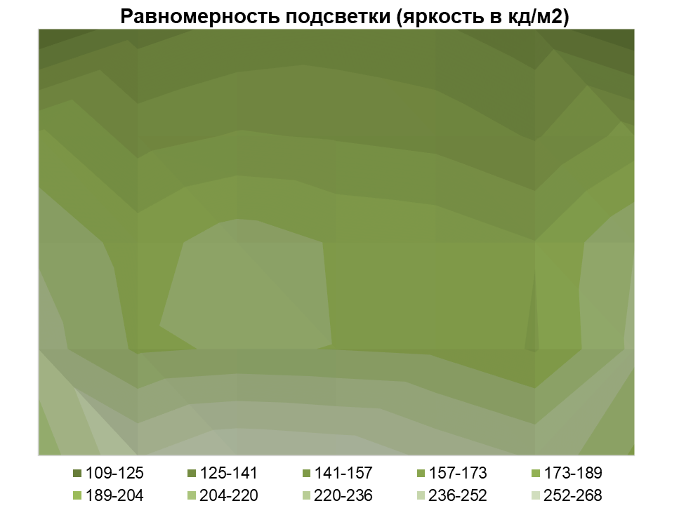 - Откровенно низкая равномерность подсветки по уровню яркости на светлых и темных полях