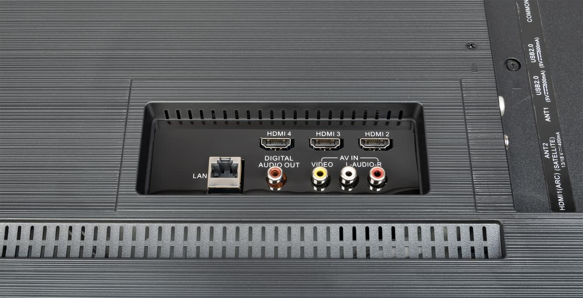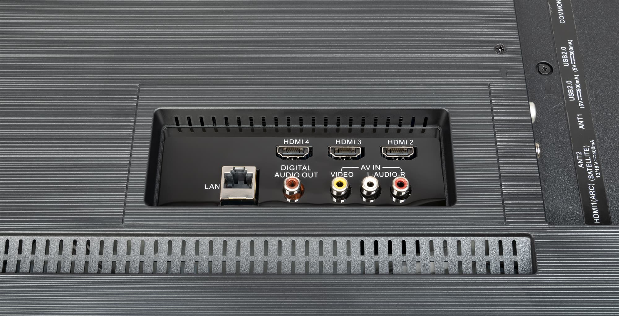 Таблица с характеристиками в начале статьи дает представление о коммуникационных возможностях телевизора. Большинство разъемов полноразмерные и размещены более-менее свободно.