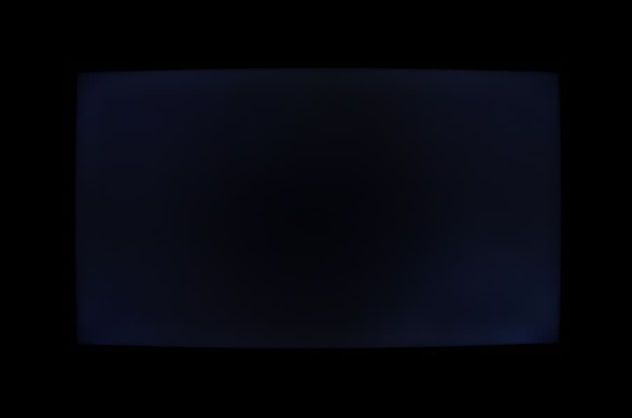 Аппаратные измерения показали, что контрастность даже для этого типа матриц высокая. Равномерность всех трех параметров средняя. На черном поле можно заметить незначительную вариацию засветки по площади экрана. Но по факту из-за высокой контрастности на это обращаешь внимание только при выводе черного поля во весь экран в полной темноте и после адаптации глаз, на реальных изображениях и в домашней обстановке неравномерность засветки черного увидеть сложно. На фотографии ниже основная неравномерность (более темный центр) вызвана тем, что фотоаппарат был относительно близко к экрану, а контрастность быстро снижается при взгляде под углом: