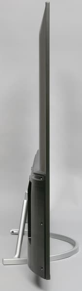 Штатная подставка собирается из двух деталей — двух стоек и дугообразного основания. Эти детали отлиты из алюминиевого сплава и имеют серебристое матовое покрытие с лаковым наружным слоем. Опирается основание на противоскользящие накладки из упругого пластика. Жесткость конструкции соответствует весу телевизора. Телевизор стоит устойчиво, без видимого наклона. Альтернативный способ установки телевизора без использования штатных ножек — крепление телевизора на стену с помощью кронштейна под монтажные отверстия VESA 400×200 мм (стальные резьбовые гнезда).