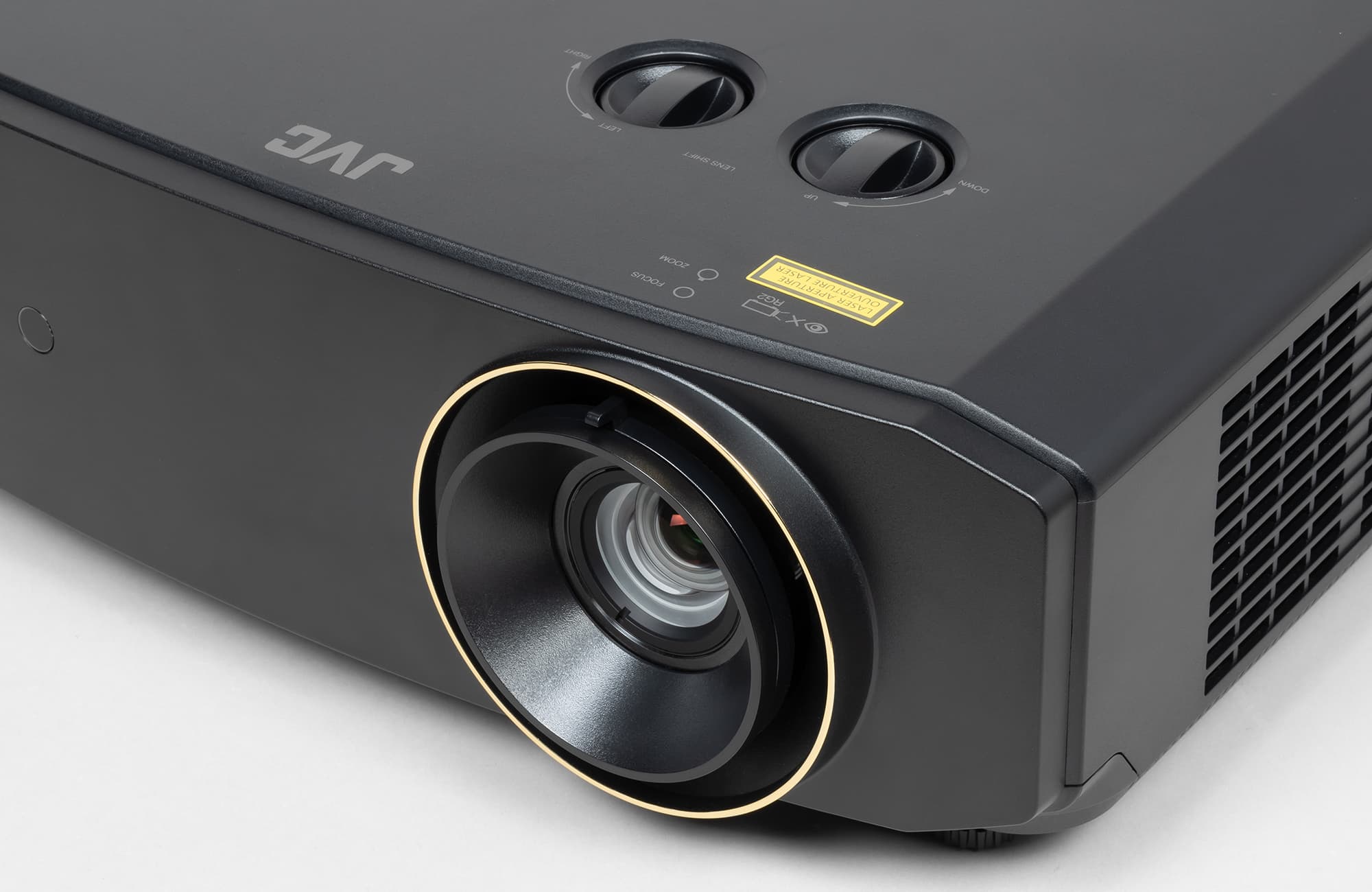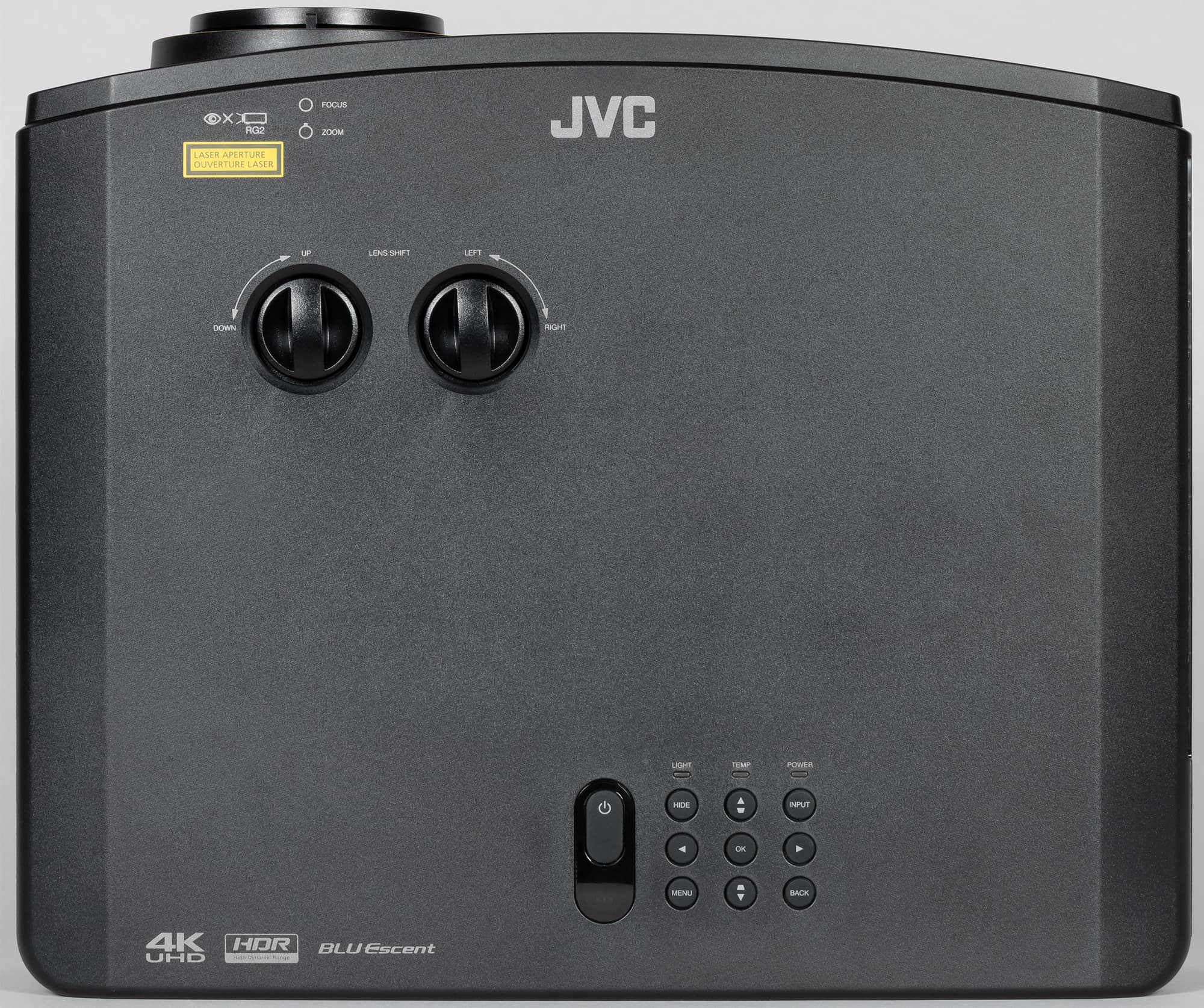 Фокусировка изображения на экране осуществляются вращением внешнего кольца на объективе, а регулировка фокусного расстояния — рычажком рядом. Два регулятора на верхней панели позволяют смещать границы проекции так, что картинка смещается максимум на 60% от высоты проекции вверх и вниз по вертикали и на 23% от ширины проекции вправо и влево по горизонтали.