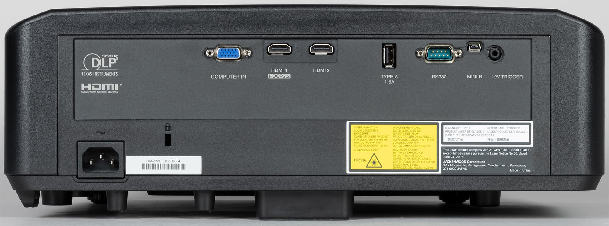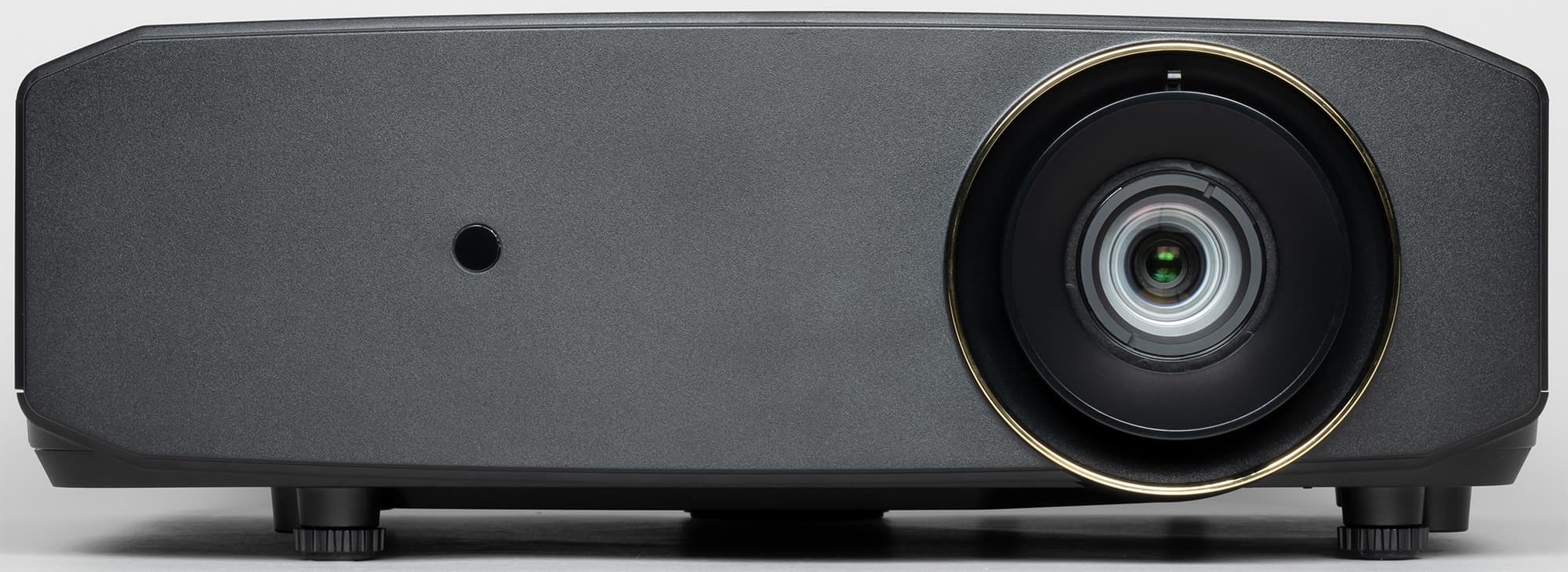 Корпус проектора изготовлен из черного пластика с матовой поверхностью. Такой цвет предпочтителен для домашнего кинотеатра, расположенного в помещении со специальным затемнением. Для подтверждения высокого класса продукта торец ниши объектива имеет блестящее золотистое покрытие. Есть еще вариант проектора LX-NZ3W в белом корпусе. Белый цвет позволяет проектору быть не очень заметным под белым потолком в обычной комнате.