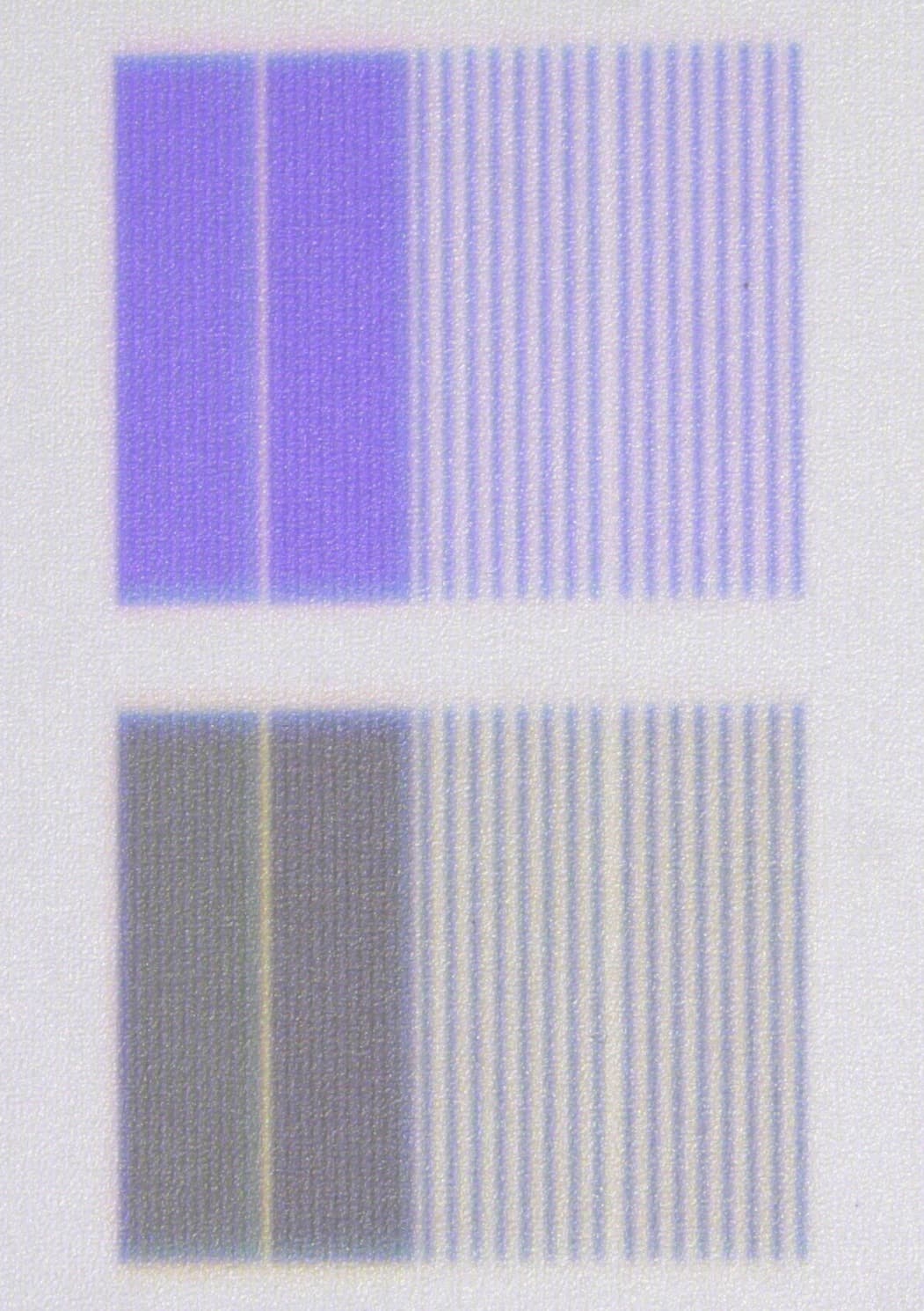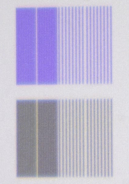 - Заметный дисбаланс яркости между белыми и цветными областями
