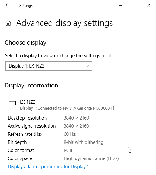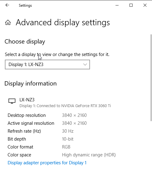 Под Windows 10 вывод в режиме HDR на данный проектор возможен при выборе соответствующих опций в настройках дисплея. При разрешении 4К и 60 Гц вывод идет в режиме 8 бит на цвет, дополненных динамическим смешением цветов, видимо, с помощью видеокарты на аппаратном уровне. При 30 Гц — 10 бит на цвет.