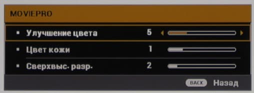 За основу для одного из двух пользовательских профилей (имя им можно задать свое) можно взять один из трех встроенных профилей. Далее настройками можно подправить цветовой и яркостный баланс, степень повышения контурной резкости и т. д.
