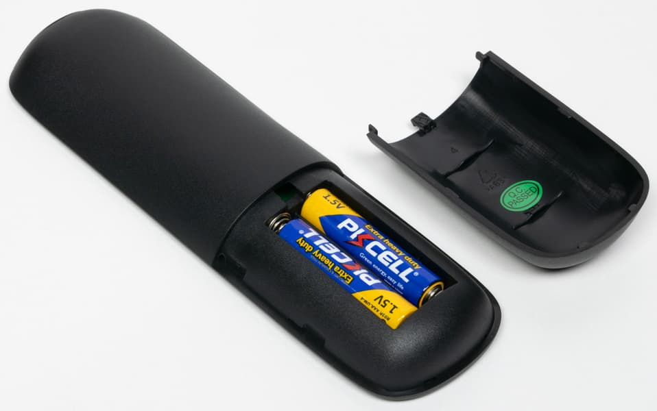 Пульт небольшой (160×48×20 мм) и легкий (64 г с комплектными элементами питания).