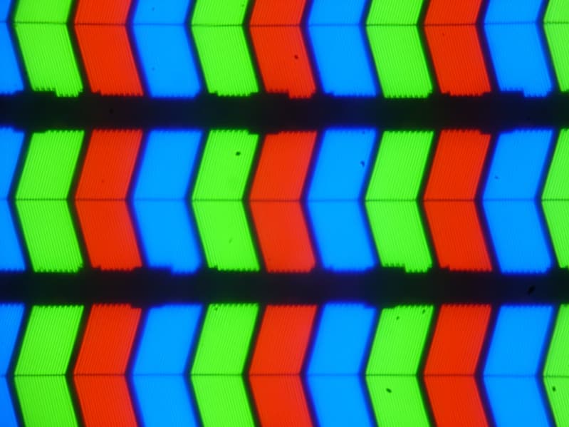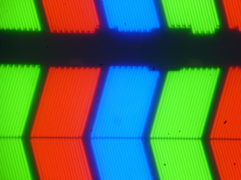 Выявленные характеристики экрана подтверждают, что в данном телевизоре установлена матрица типа IPS. Микрофотографии не противоречат этому — характерная для IPS структура субпикселей видна (черные точки — это пыль на матрице фотоаппарата):