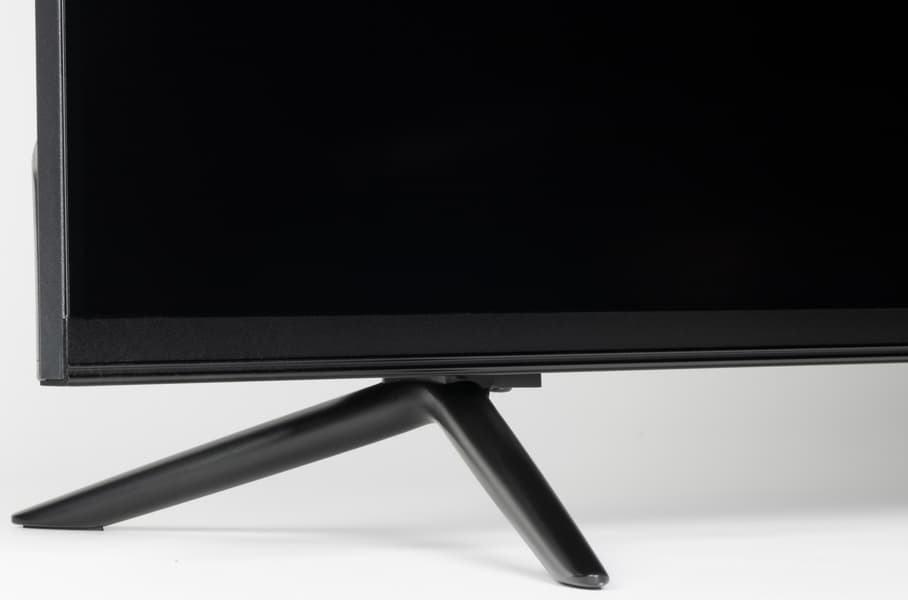 Опираются ножки на противоскользящие накладки из упругого пластика. Жесткость конструкции соответствует весу телевизора. Телевизор стоит устойчиво, без видимого наклона. Расстояние между крайними точками ножек 128 см.