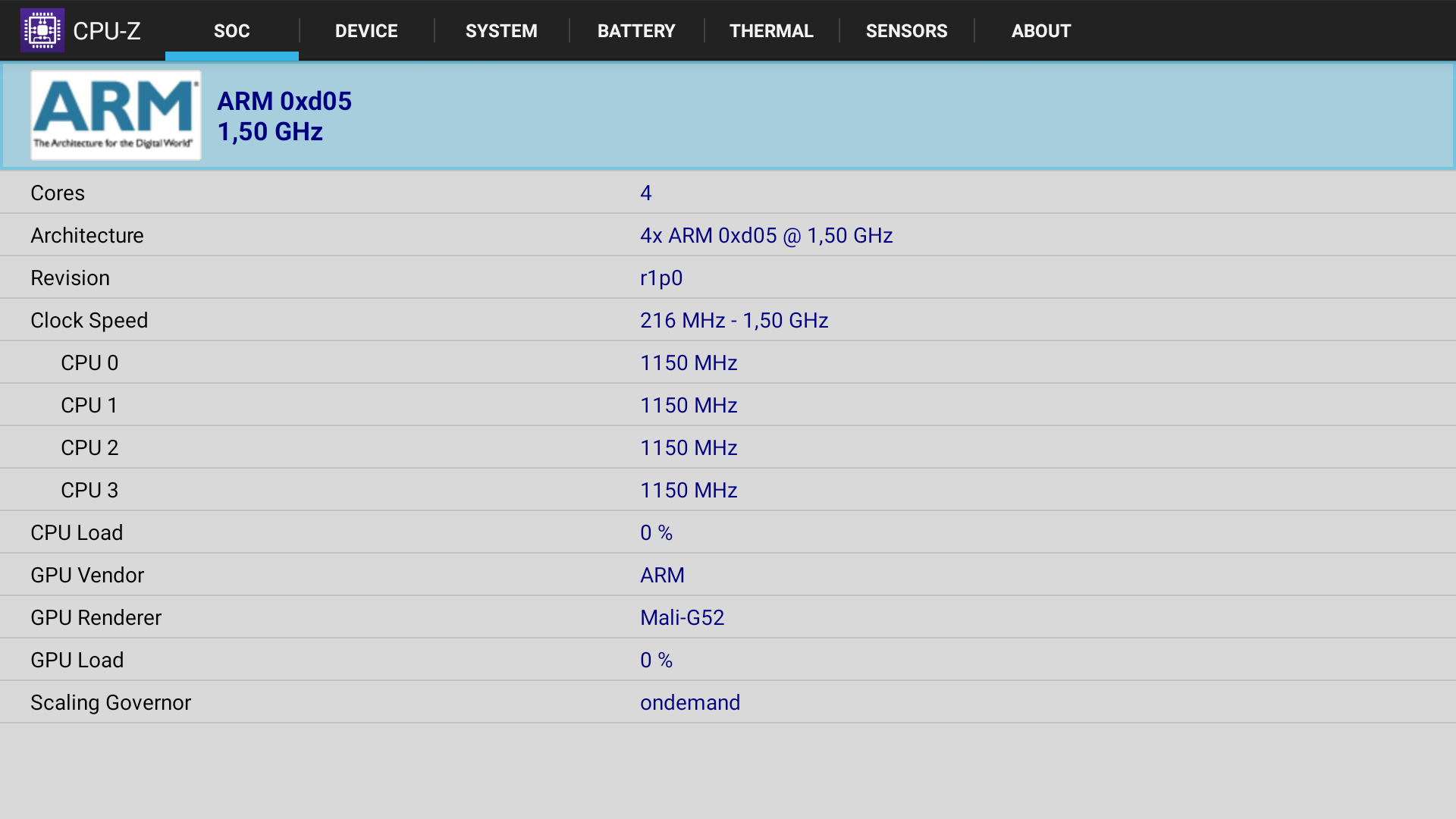 Программной платформой для этого ТВ служит операционная система Android TV, основанная на Android версии 11. Конфигурацию аппаратной части поясняют данные программы CPU-Z: