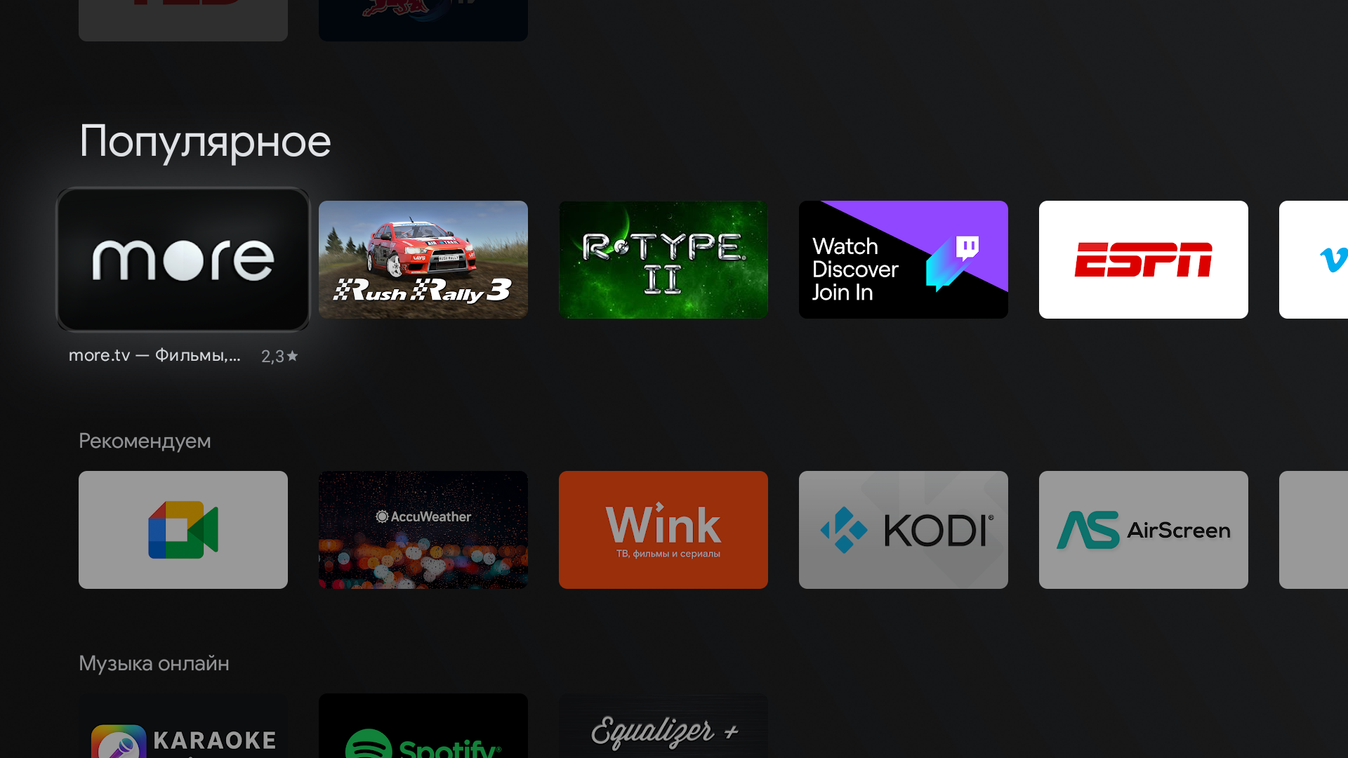 Формально для Android TV выбор приложений в магазине Google Play очень ограничен.