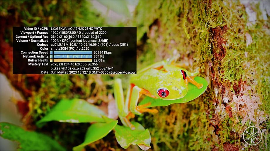 Тестирование воспроизведения видеофайлов проводилось в основном с помощью плеера MX Player. Поддерживается аппаратное декодирование звуковых дорожек как минимум в форматах AAC, AC3, DTS, MP2, MP3, OGG, WMA и PCM. Большинство из опробованных современных актуальных форматов файлов высокого разрешения без проблем воспроизводились в режиме аппаратного декодирования, вплоть до вариантов H.265 с разрешением 4К при 60 кадр/с. Поддерживается воспроизведение видеофайлов HDR (HDR10 и HLG, контейнеры MP4, TS, WebM и MKV кодеки AV1, VP9 и H.265), а в случае файлов с 10 бит на цвет согласно визуальной оценке градаций оттенков больше, чем у 8-битных файлов.