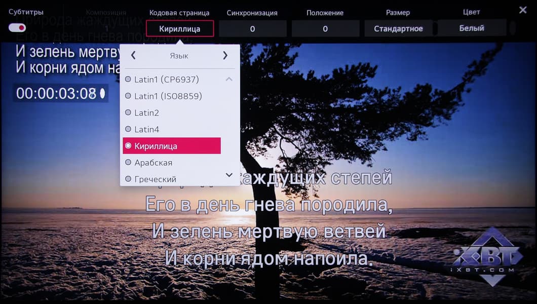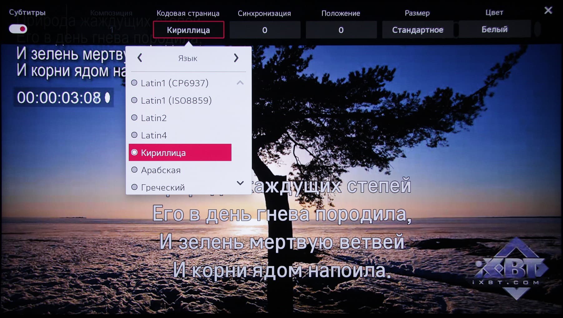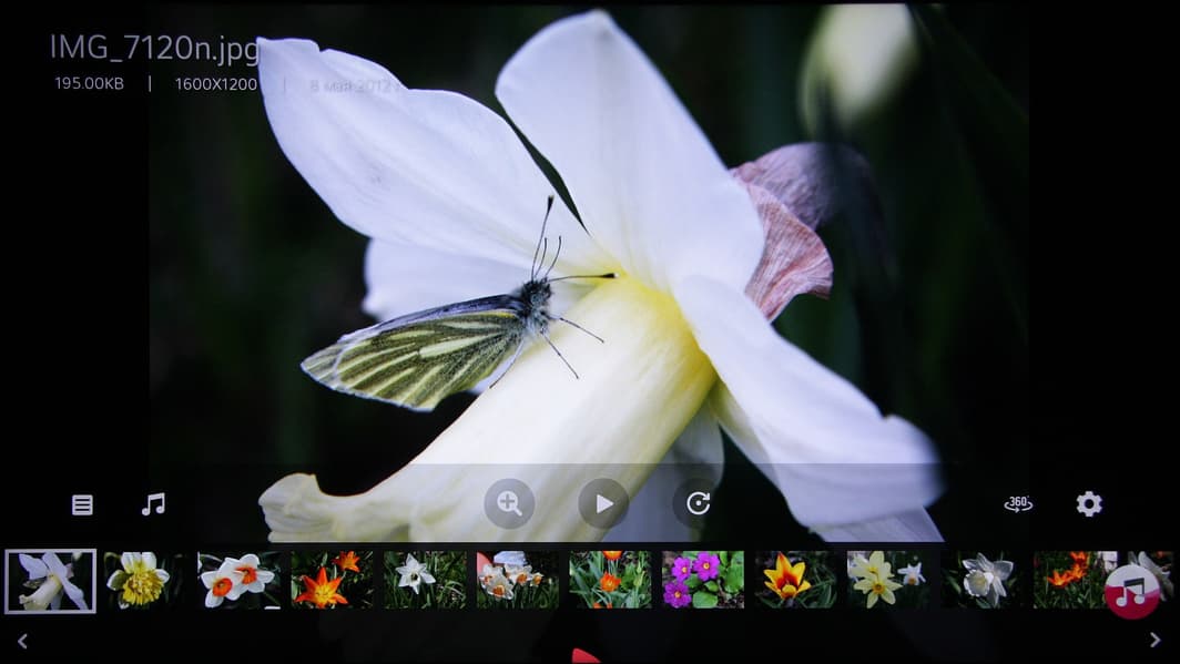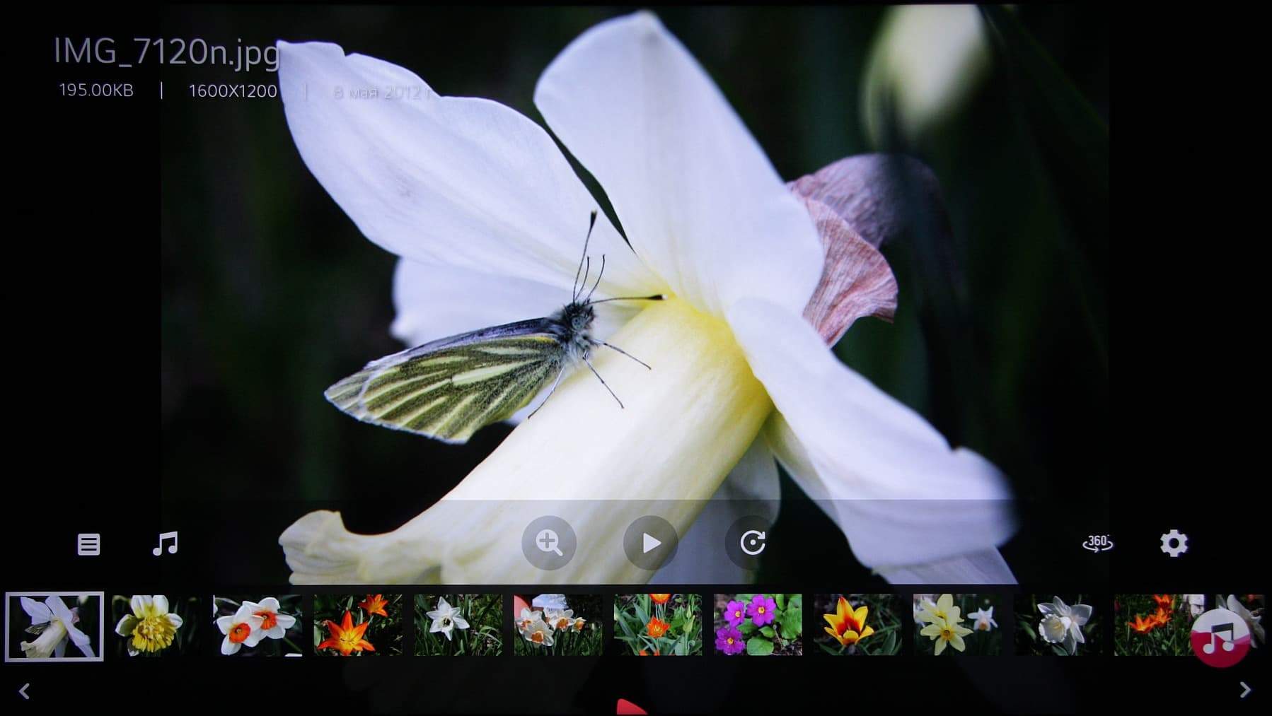 При поверхностном тестировании воспроизведения мультимедийного контента мы ограничились рядом файлов, запускаемых в основном с внешних USB-носителей. Источниками мультимедийного контента также могут быть серверы UPnP (DLNA). Были опробованы жесткие диски, внешние SSD и обычные флешки. Два протестированных жестких диска работали от любого из USB-портов, а в режиме ожидания самого ТВ или после некоторого периода отсутствия обращения к ним жесткие диски отключались (это настраивается в меню установок). Отметим, что телевизор поддерживает (чтение и запись) USB-накопители с файловыми системами FAT32 и NTFS (exFAT не поддерживается), а с кириллическими названиями файлов и папок не было никаких проблем. Плеер телевизора обнаруживает все файлы в папках, даже если на диске очень много файлов (более 100 тысяч), что получается далеко не у каждого «умного» ТВ. Нами подтверждена способность телевизора показывать растровые графические файлы в форматах JPEG, PNG и BMP, в том числе в виде слайд-шоу под фоновую музыку. Правда, маленький значок запущенного аудиоплеера убрать нельзя (вернее, можно, но вместе с музыкой).