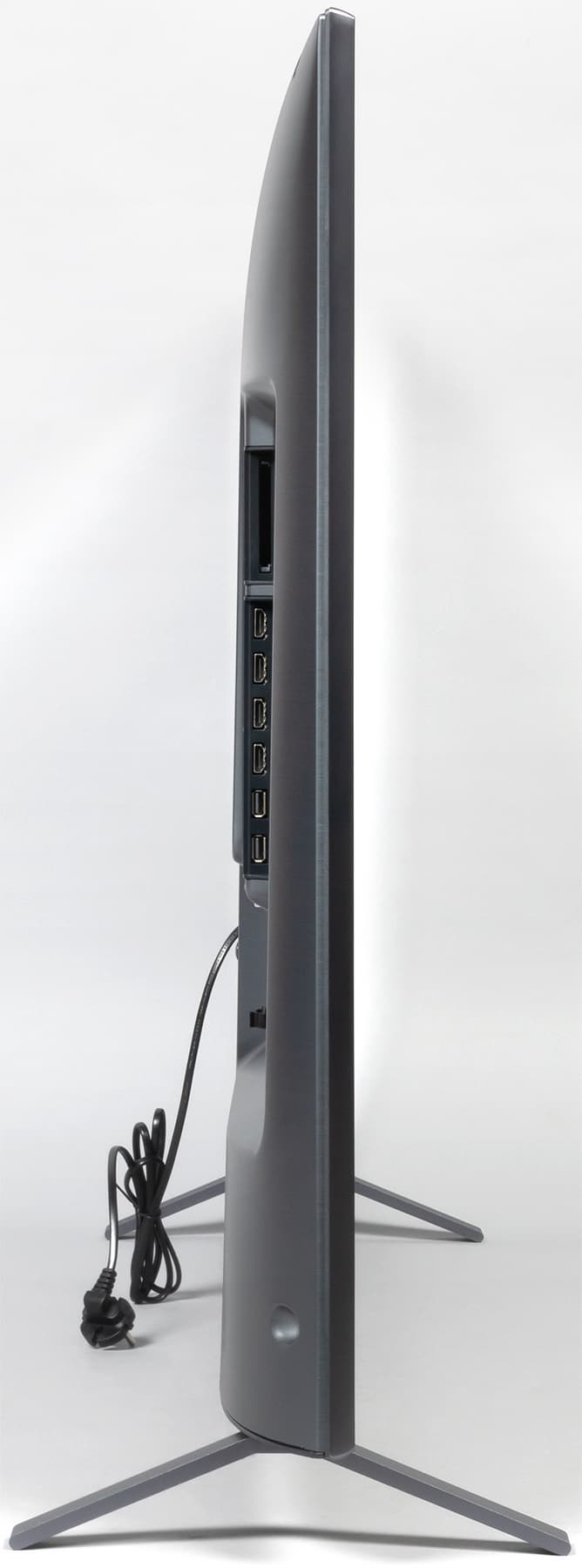 Таблица с характеристиками в начале статьи дает представление о коммуникационных возможностях телевизора. Все разъемы стандартные, полноразмерные и размещены достаточно свободно. В плюсы стоит записать целых четыре входа HDMI и три USB, а в минусы — очень неудобное расположение разъема для подключения наушников. Отметим, что это первый телевизор среди побывавших у нас на тестах, который оснащен адаптером проводной сети Ethernet со скоростью 1 Гбит/с. Работает, по крайней мере, базовая поддержка управления по HDMI: телевизор сам включается при включении плеера и запуске диска на воспроизведение. Также плеер выключается при выключении телевизора, и включается при включении телевизора.