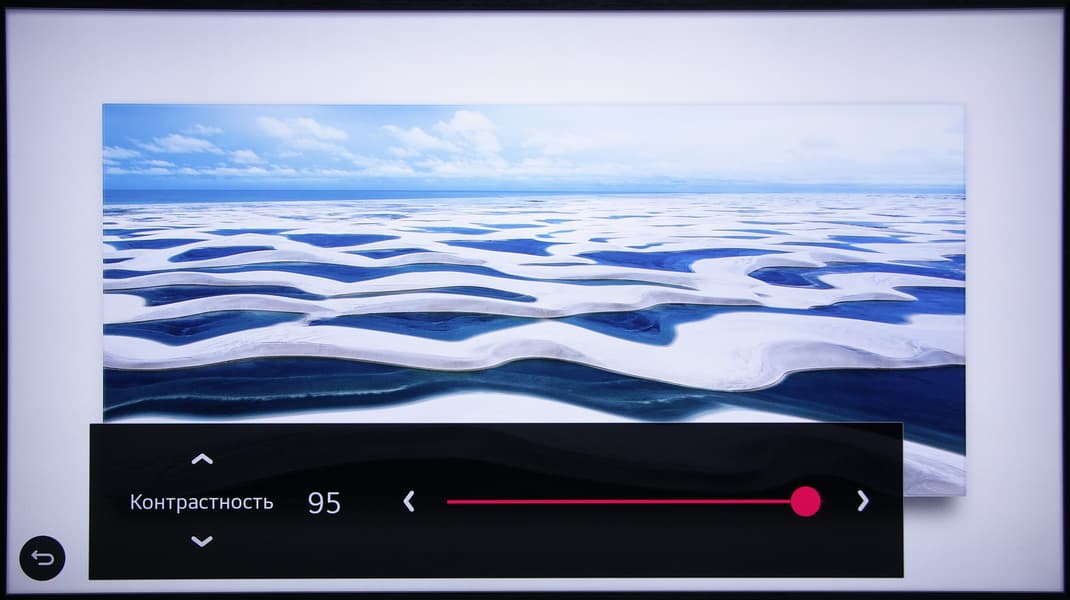 Непосредственно при регулировке параметров изображения на экран выводится уже только название настройки, ползунок и текущее значение или список вариантов, что облегчает оценку влияния этой настройки на изображение, при этом настройки с ползунками перебираются стрелками вверх и вниз.