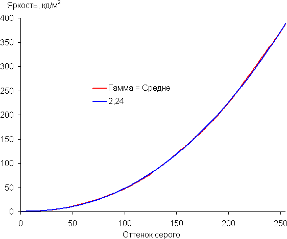 Аппроксимация полученной гамма-кривой дала показатель 2,24, что немного выше стандартного значения 2,2, при этом реальная гамма-кривая мало отклоняется от аппроксимирующей степенной функции: