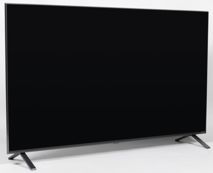 Штатная подставка состоит из двух отлитых из алюминиевого сплава ножек галочкой, которые винтами прикрепляются к нижнему торцу. Поверхность ножек анодирована и покрашена в темно-серый цвет. Опираются ножки на противоскользящие резиновые накладки. Жесткость конструкции соответствует весу телевизора. Телевизор стоит устойчиво, без видимого наклона. Расстояние между крайними точками ножек 109,5 см. Альтернативный способ установки телевизора без использования штатной подставки — это крепление телевизора на стену с помощью кронштейна под монтажные отверстия VESA 300 на 300 мм.