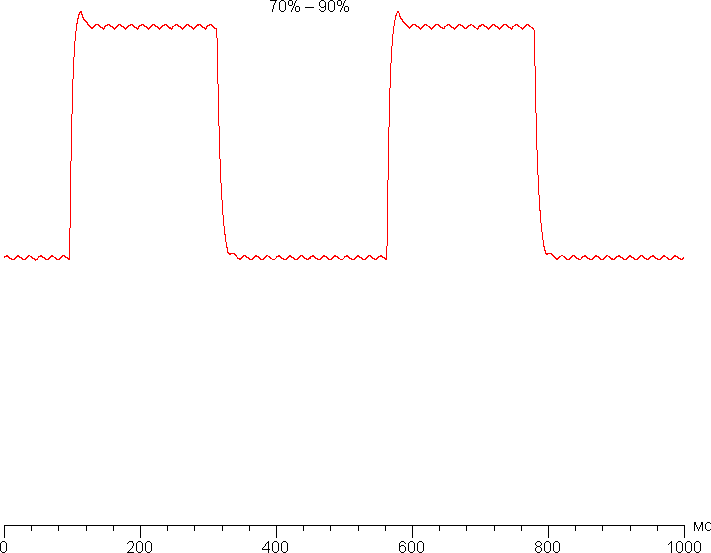Время отклика при переходе черный-белый-черный равно 14,5 мс (7,0 мс вкл. + 7,5 мс выкл.). Переходы между полутонами происходят в среднем за 19 мс в сумме. Есть очень слабый «разгон» матрицы, не приводящий к видимым артефактам, — на фронтах включения в случае некоторых переходов есть едва обнаруживаемые выбросы.