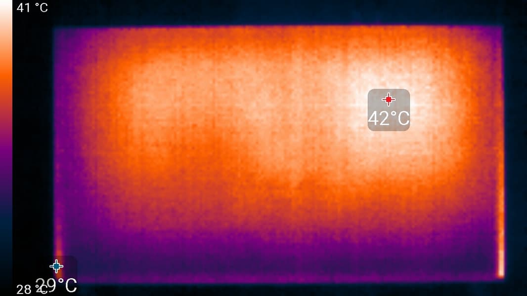Видно, что нагрев невысокий, но все же исходящее от телевизора тепло ощущается.