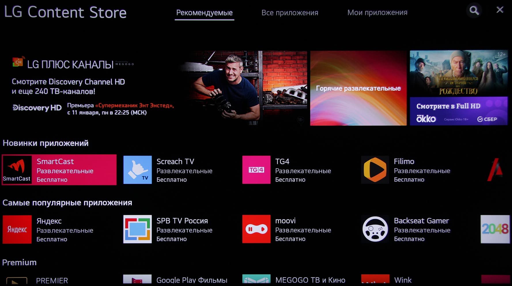 Приложение YouTube, кстати, изначально не предустановлено, вместо этого приложения в LG решили продвигать местных поставщиков потокового вещания и не очень актуальный для России Netflix. Конечно, все доступное для webOS Smart TV по количеству и функциональности нельзя даже и пытаться сравнивать с разнообразием приложений для Android [TV].