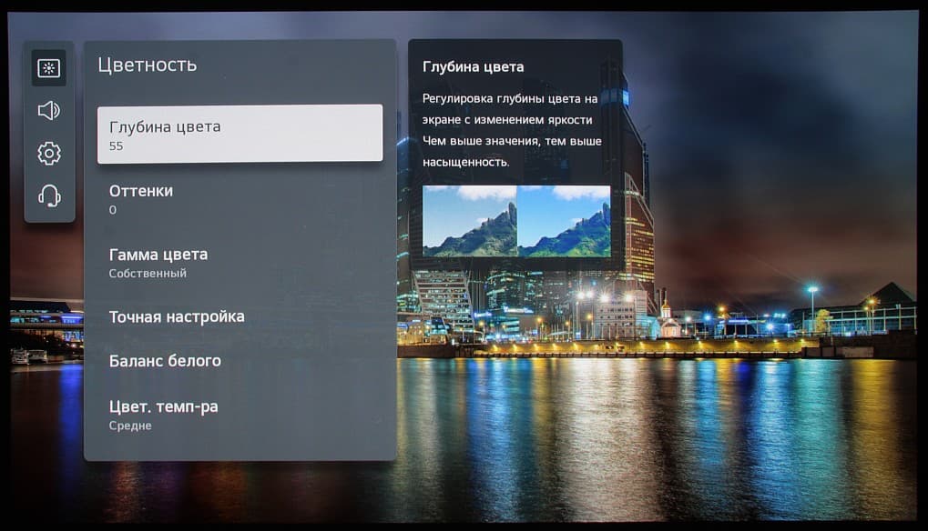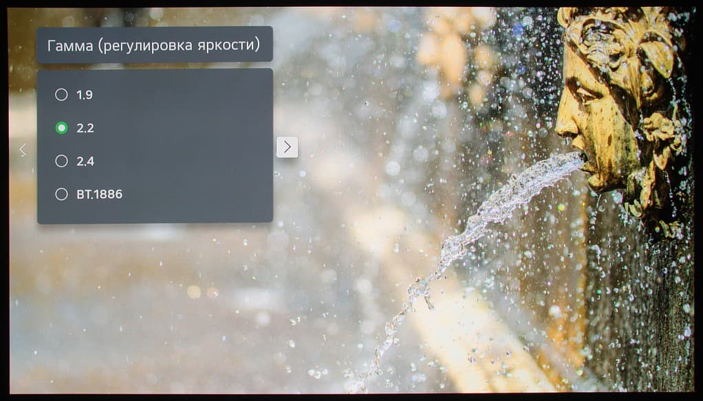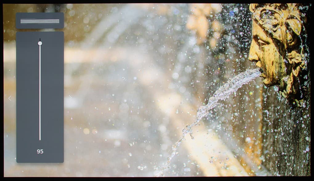 Непосредственно при регулировке параметров изображения на экран выводится уже только название настройки, ползунок и текущее значение или список вариантов, что облегчает оценку влияния этой настройки на изображение, при этом настройки на текущей странице перебираются экранными кнопками-стрелками влево и вправо, без выхода на страницу меню.