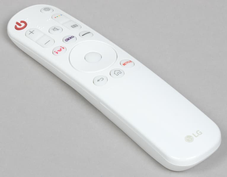 Пульт самый простой, работает только по ИК и не даже имеет подсветки кнопок, что для пульта от проектора является недостатком. Впрочем, совместимость с продвинутыми пультами серии Magic заявлена. Корпус пульта изготовлен из белого пластика с глянцевой, а в области кнопок с матовой поверхностью. Благодаря особой форме пульт удобно лежит в руке. Обозначения большинства кнопок достаточно крупные и контрастные. Кнопок мало. Большинство (кроме курсорного круга) кнопок изготовлено из упругого резиноподобного пластика. При нажатии на кнопки раздается негромкий щелчок. Часть функций вызывается при длительном удерживании кнопок. К сожалению, не обошлось без кнопок, напрямую запускающих ряд приложений. Последствия случайного нажатия на них очень раздражают.