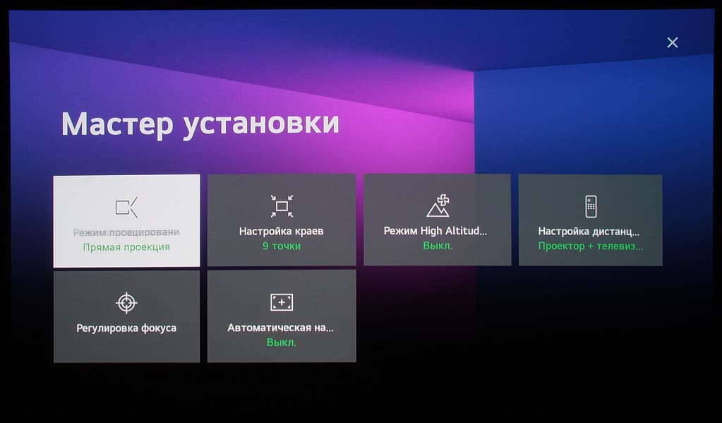 В проекторе есть функция автоматической фокусировки и цифровой коррекции геометрии проекции. Конечно, вручную все это можно сделать с лучшим качеством конечного результата, но времени понадобится точно больше. Тогда как автоматика настраивает фокус и геометрию буквально за пару секунд и с вполне приемлемым качеством.