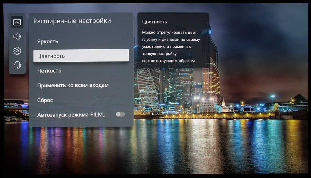 А, например, в режиме Filmmaker mode, и если для Гамма цвета выбран вариант Автоматическое обнаружение, охват поджимается к границам sRGB: