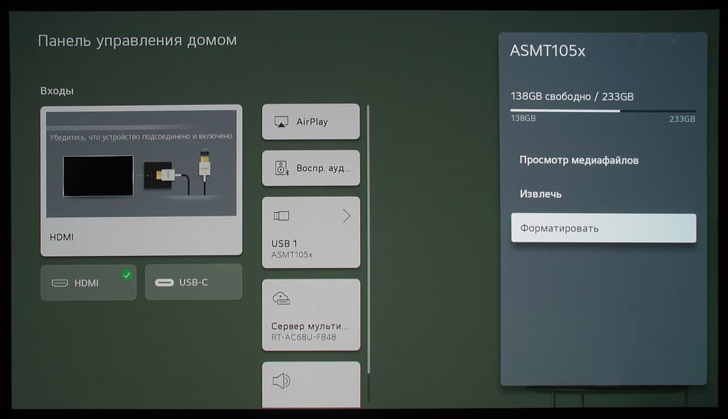 В окне приложения с названием Панель управления домом находятся плитки доступа к активным входам и подключенным устройствам. С некоторыми из последних даже можно что-то сделать, например извлечь или отформатировать флешку или жесткий диск.